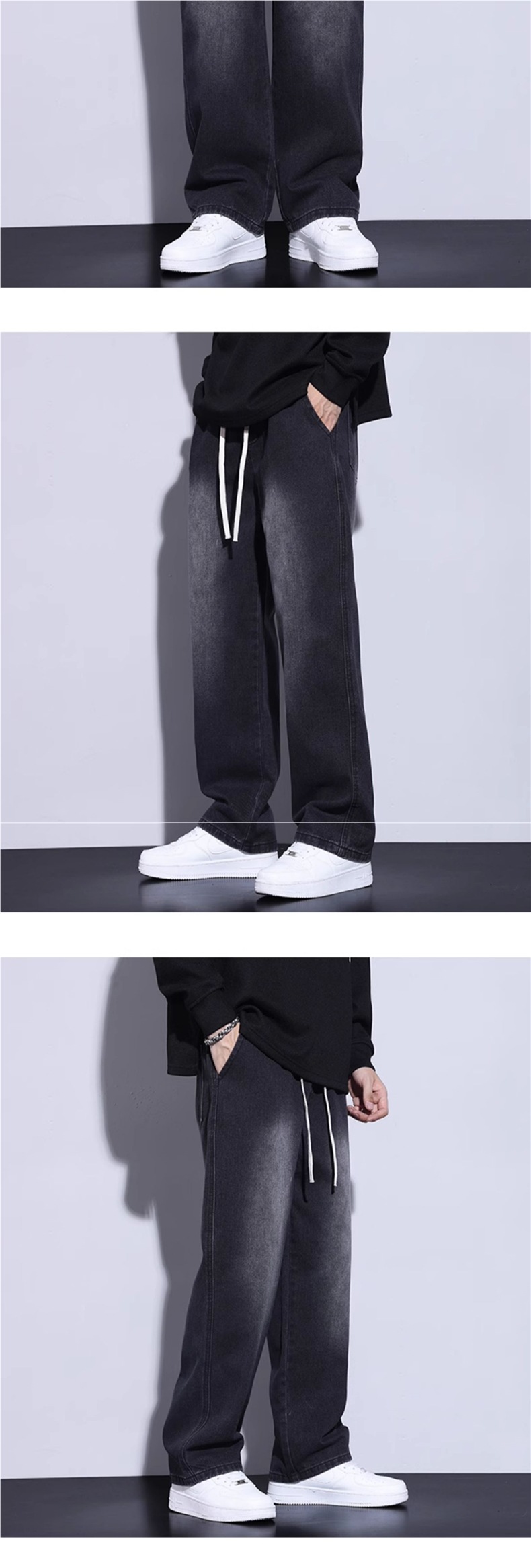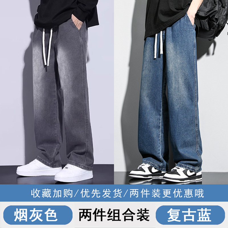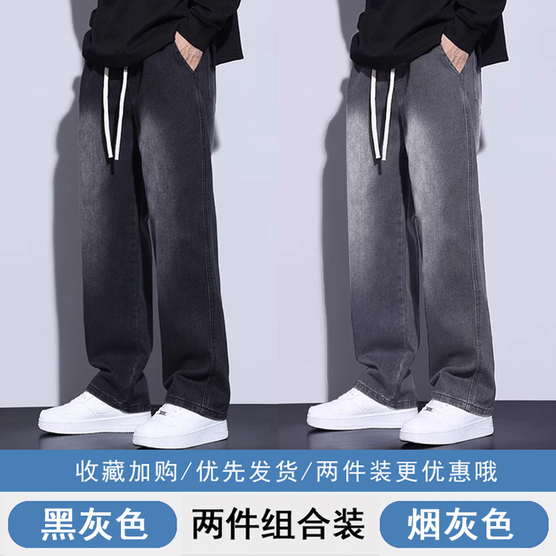 청바지 남자 가을 겨울 검은 미국 남자 바지 기모 남자 바지 소년 느슨한 캐주얼 스트레이트 바지스토어 가기