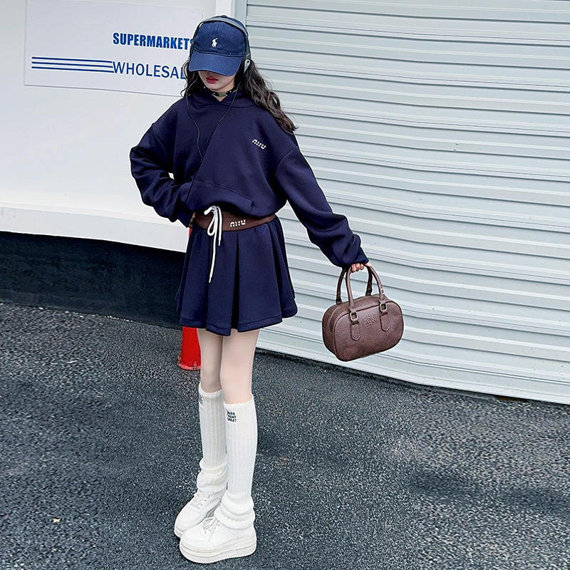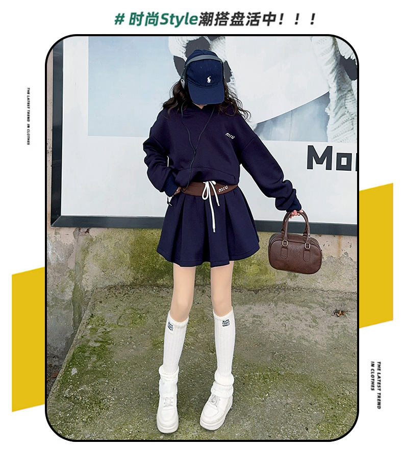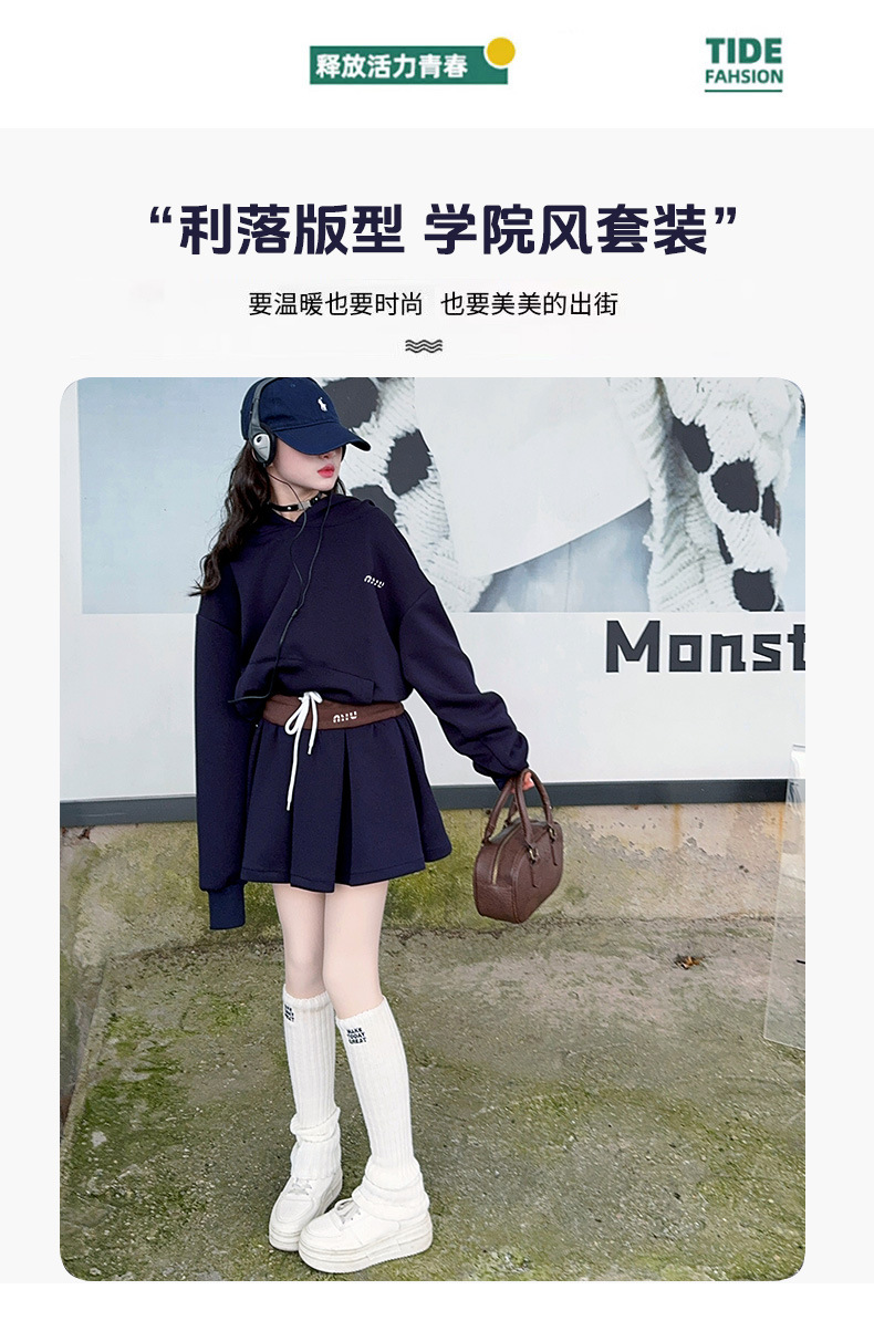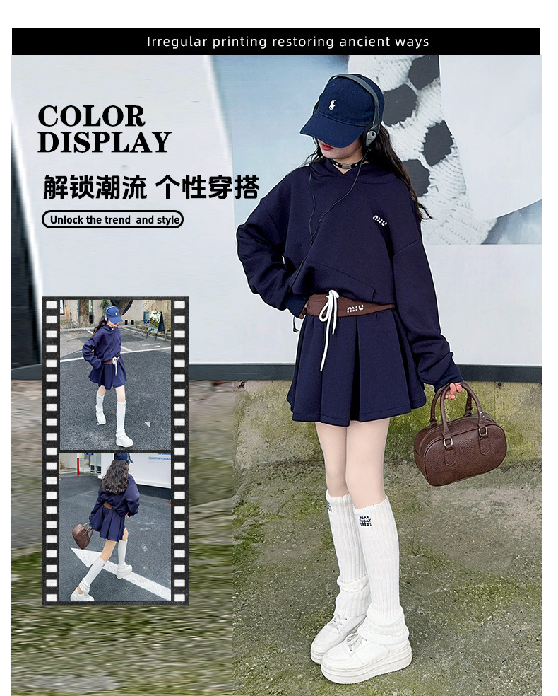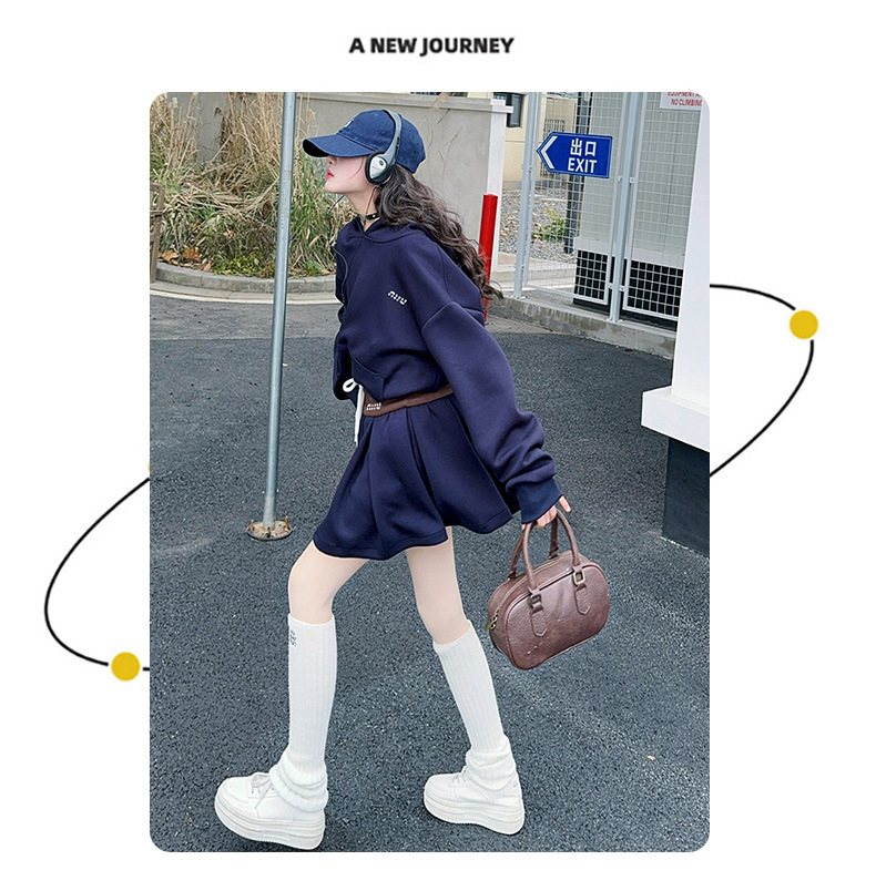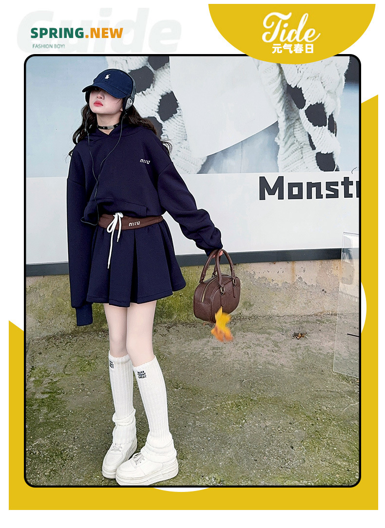 봄 2025 디자인 센스 사무엘 달콤한 소녀 후드 스웨트 스커트 세트 허리 컬러 스플릿 스커트 캐주얼 스포츠