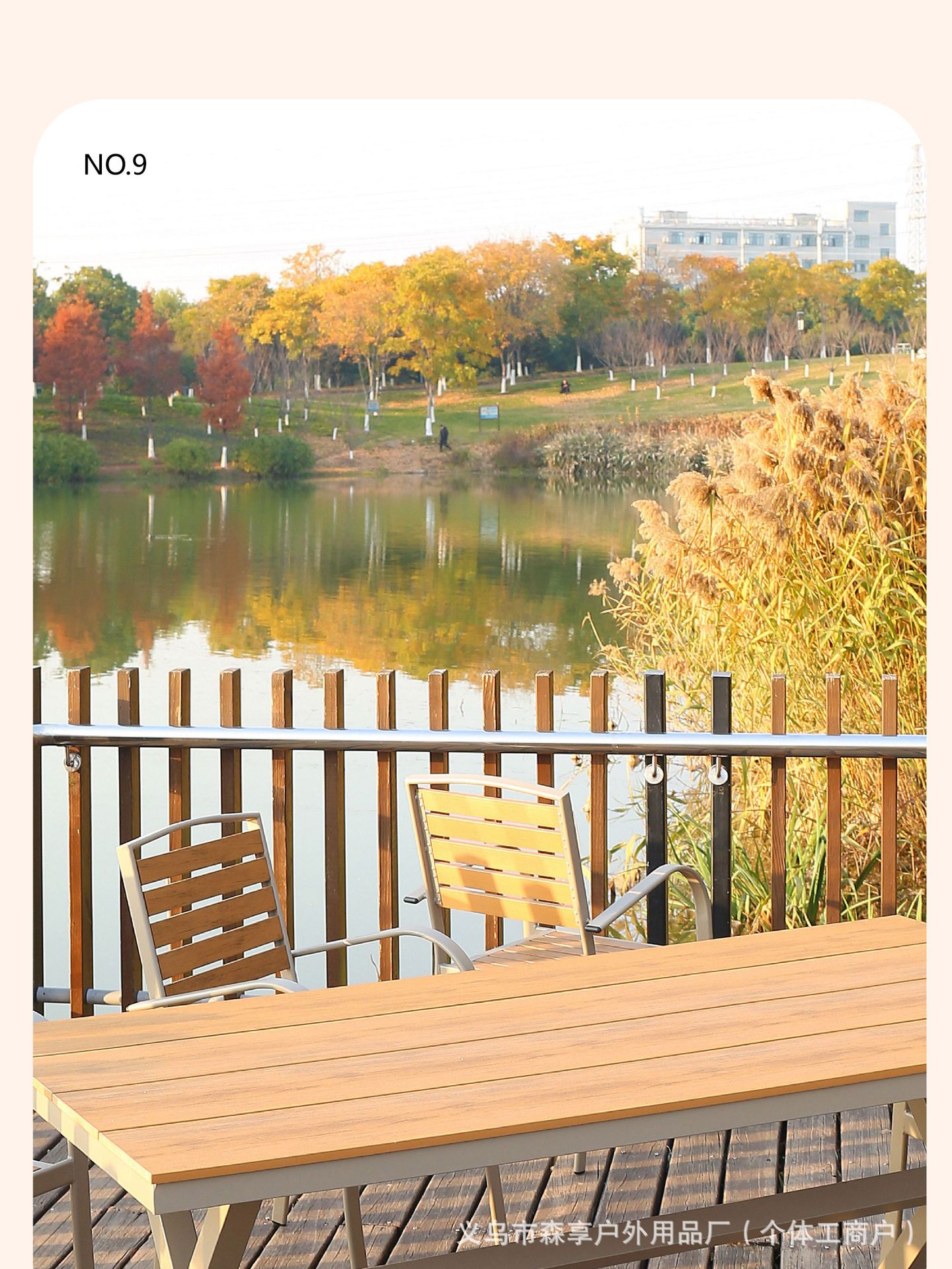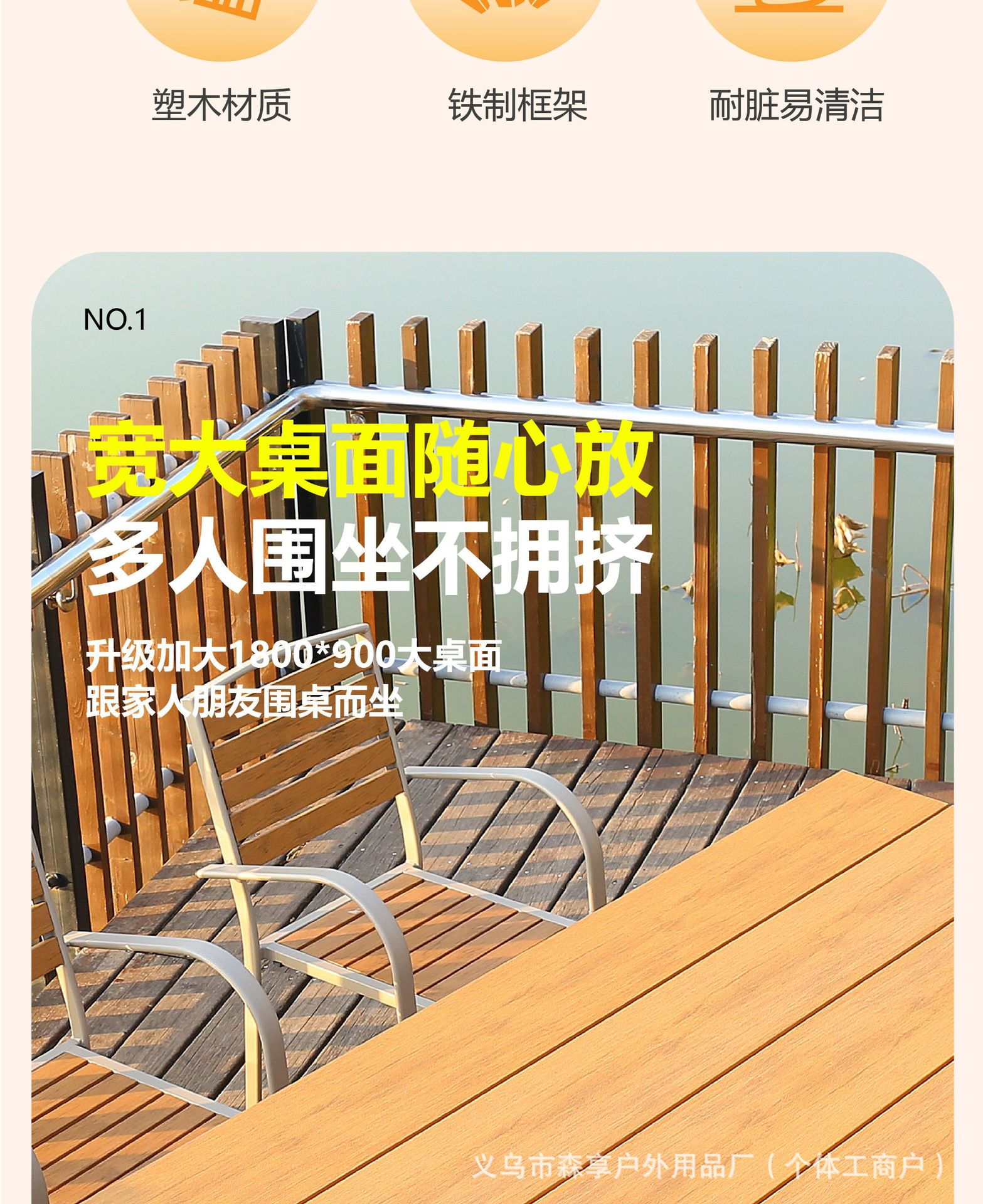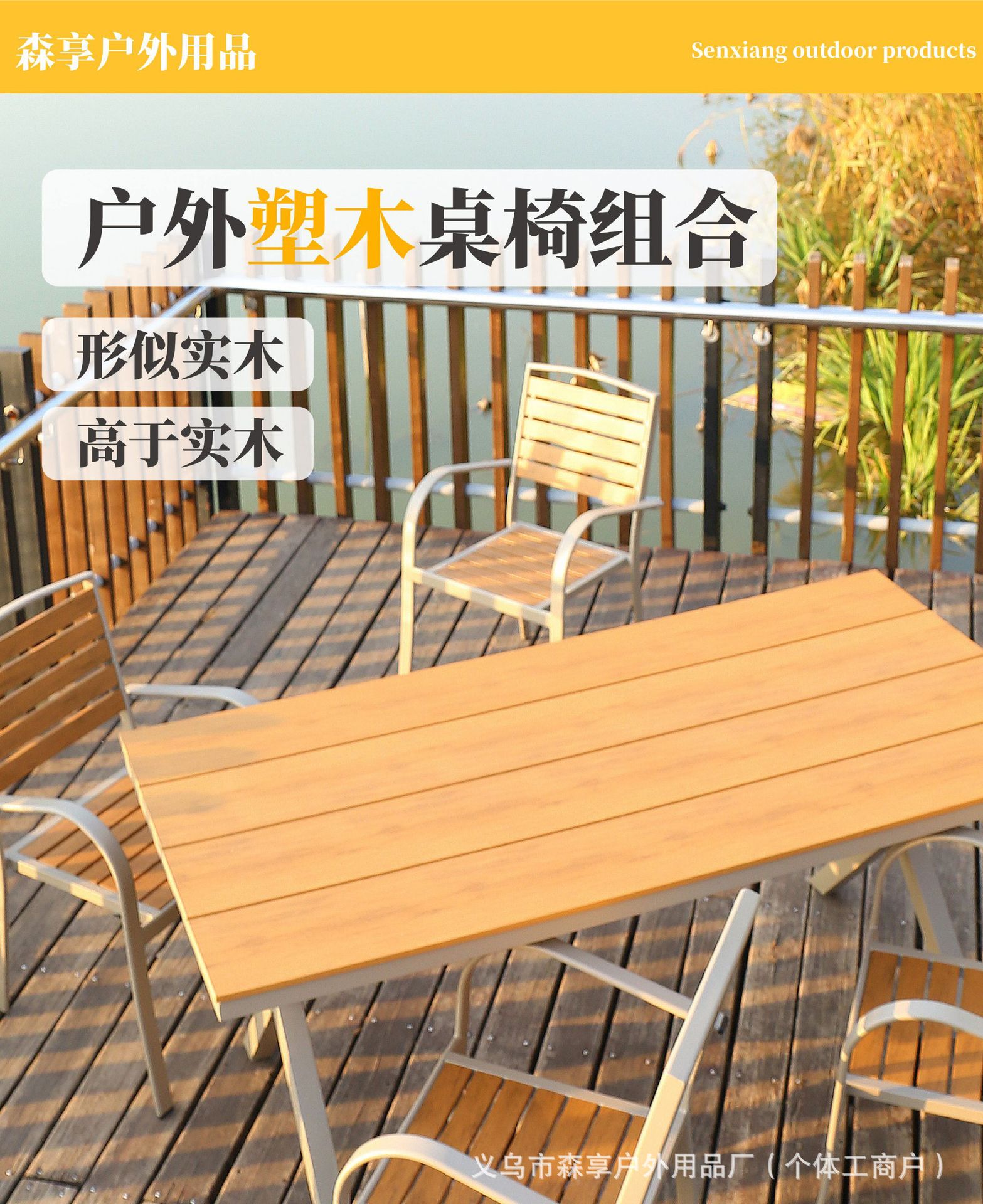 야외 빌라 플라스틱 나무 테이블과 의자 세트 안뜰 레저 야외 식탁과 의자 조합 부식 방지 나무 방수 자외선 차단제스토어 가기