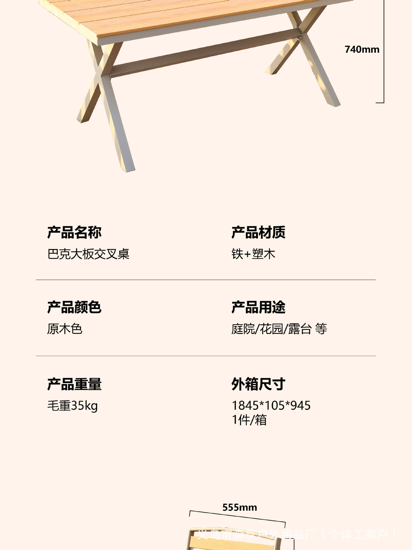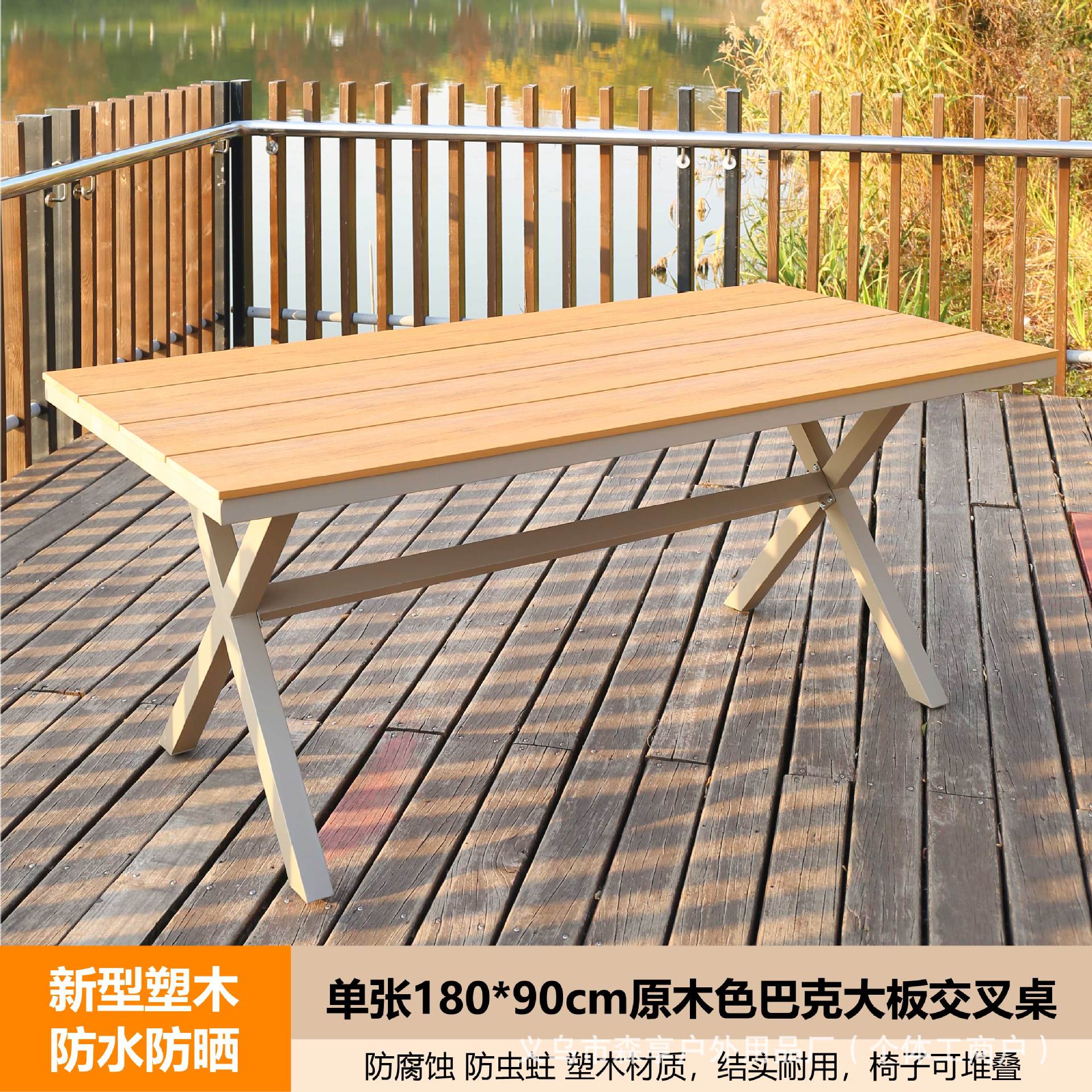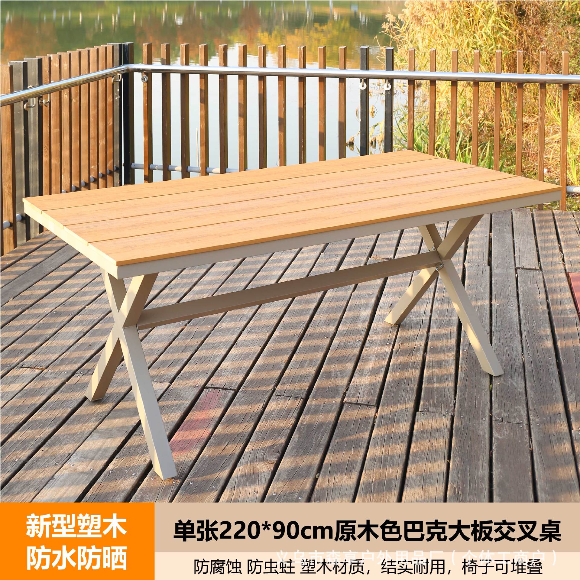 • 플라스틱 목재 220*90 철 대형 플레이트 크로스 테이블