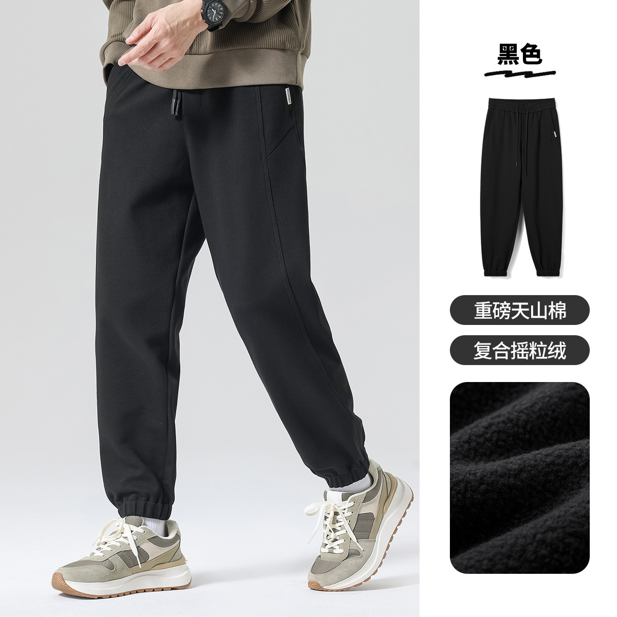 주름 방지 천산면 및 벨벳 캐주얼 바지 남자 느슨한 올 매치 스포츠 바지