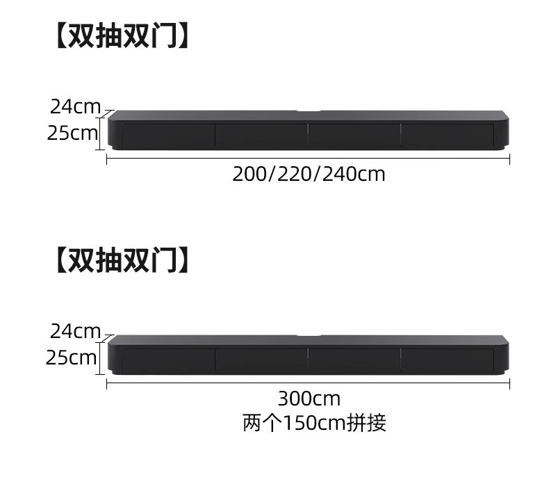 • [짧은 모델] 검정색 원목 2.4m - 둥근 모서리