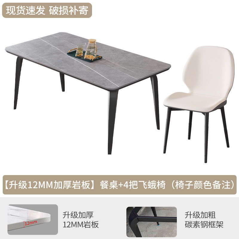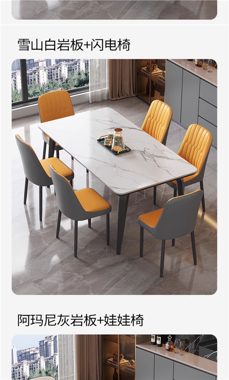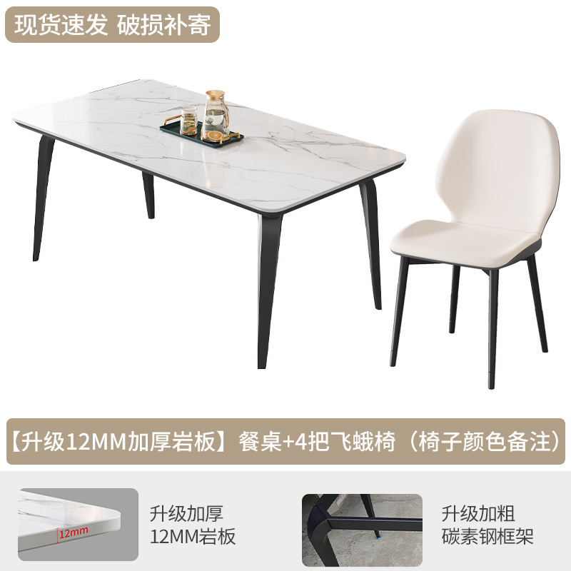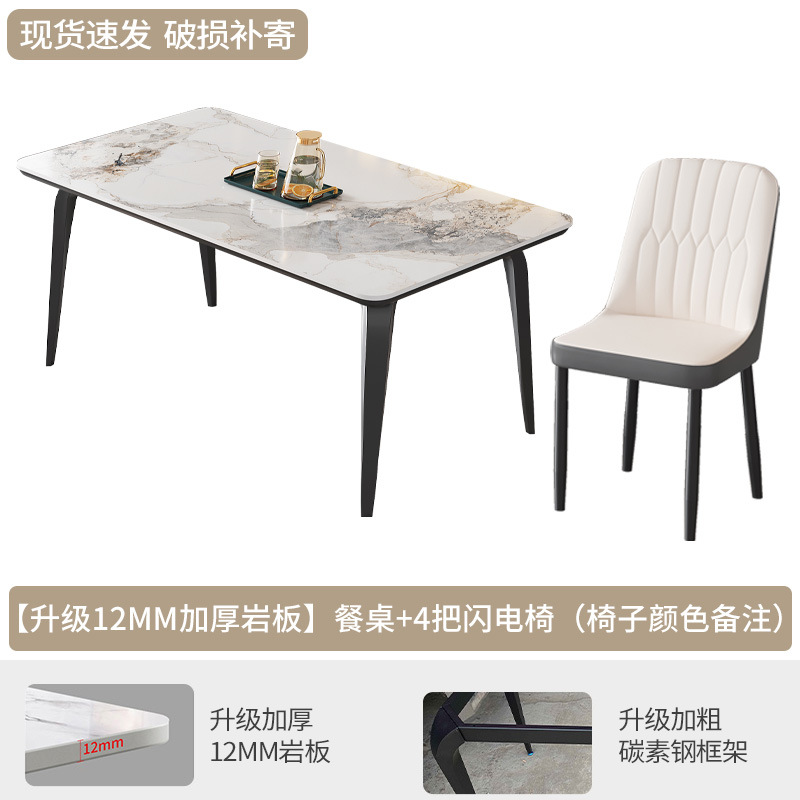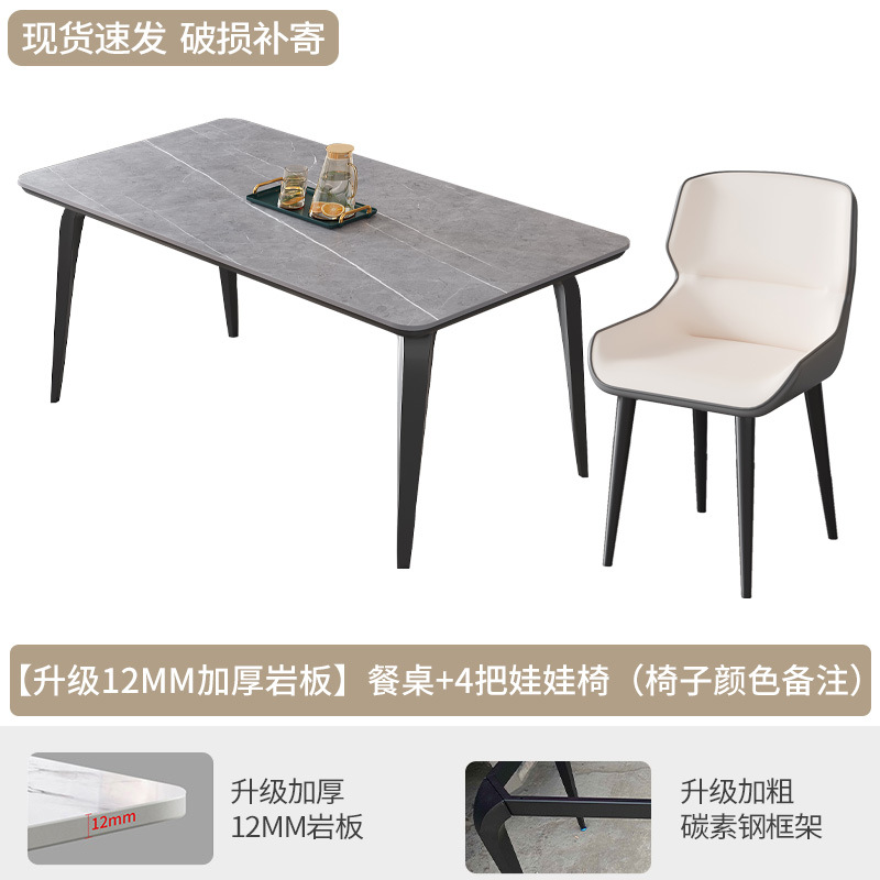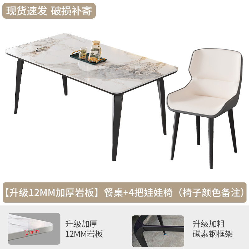 바위 보드 식탁 및 의자 조합 새로운 스타일 가정용 거실 작은 아파트 직사각형 2024 새로운 스타일 현대 간단한 쌀 테이블스토어 가기