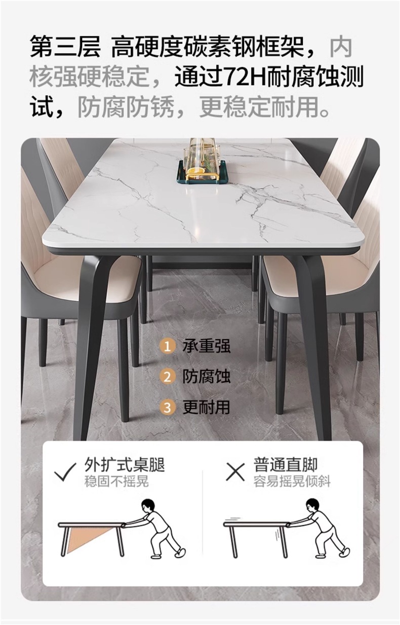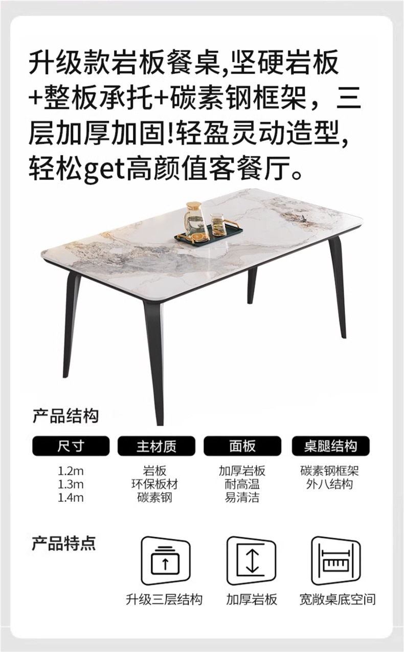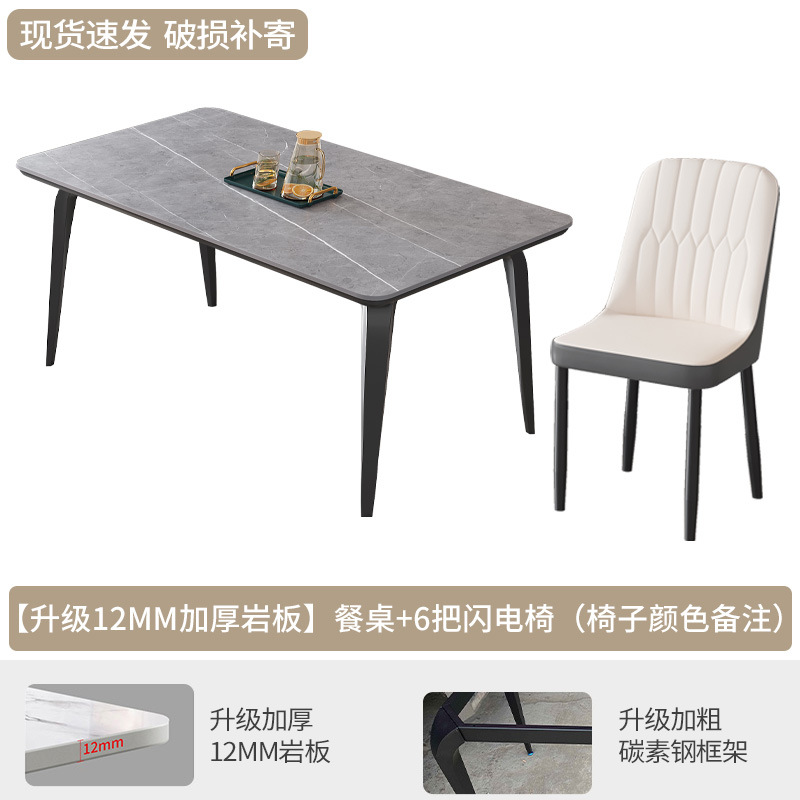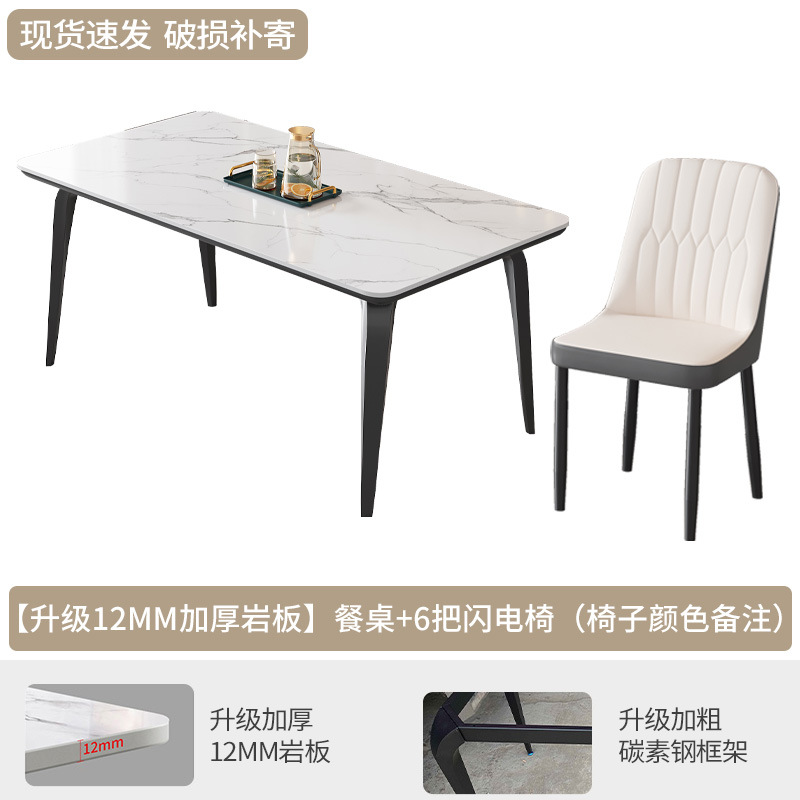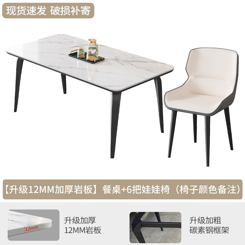 바위 보드 식탁 및 의자 조합 새로운 스타일 가정용 거실 작은 아파트 직사각형 2024 새로운 스타일 현대 간단한 쌀 테이블스토어 가기