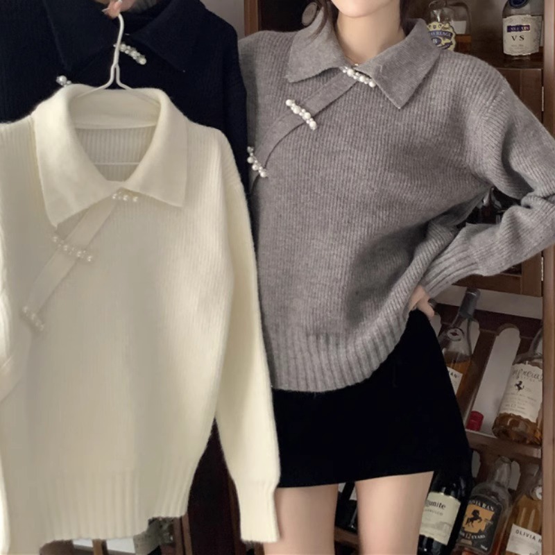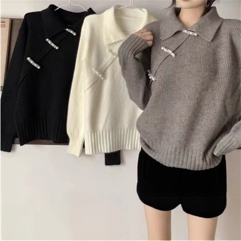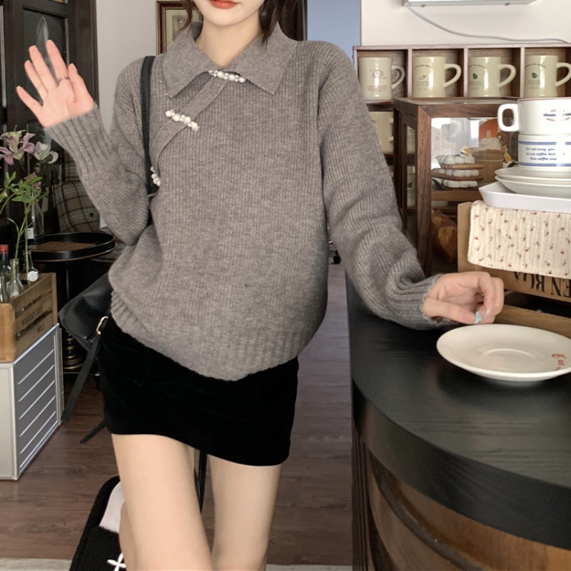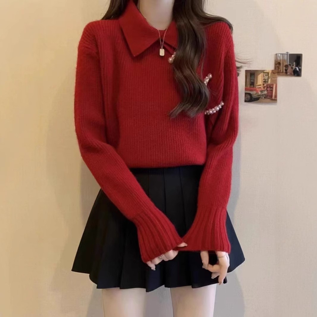 새로운 중국 옷깃 버클 레드 스웨터베이스 스웨터 여성용 가을과 겨울 약간의 지방 플러스 사이즈 배 덮개 슬림 탑
