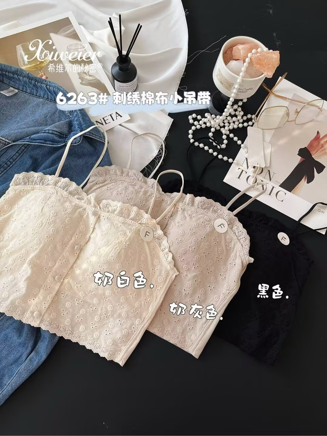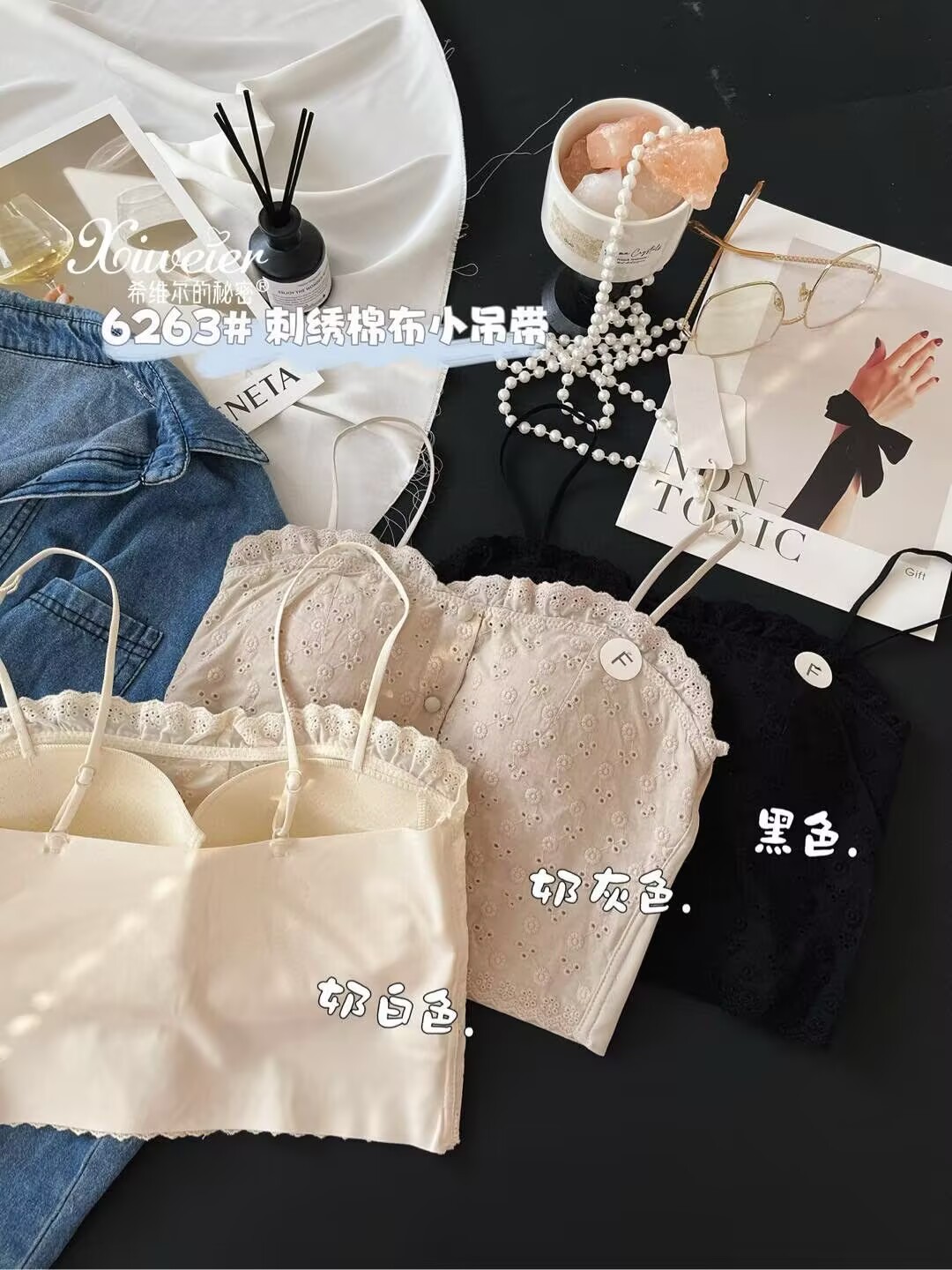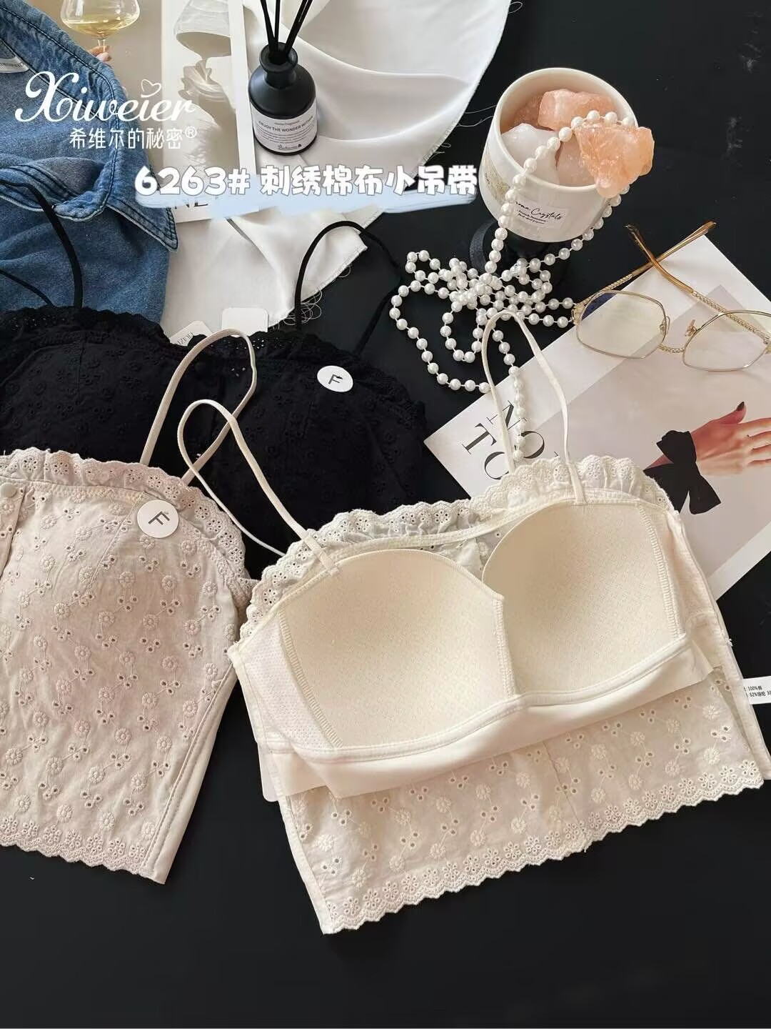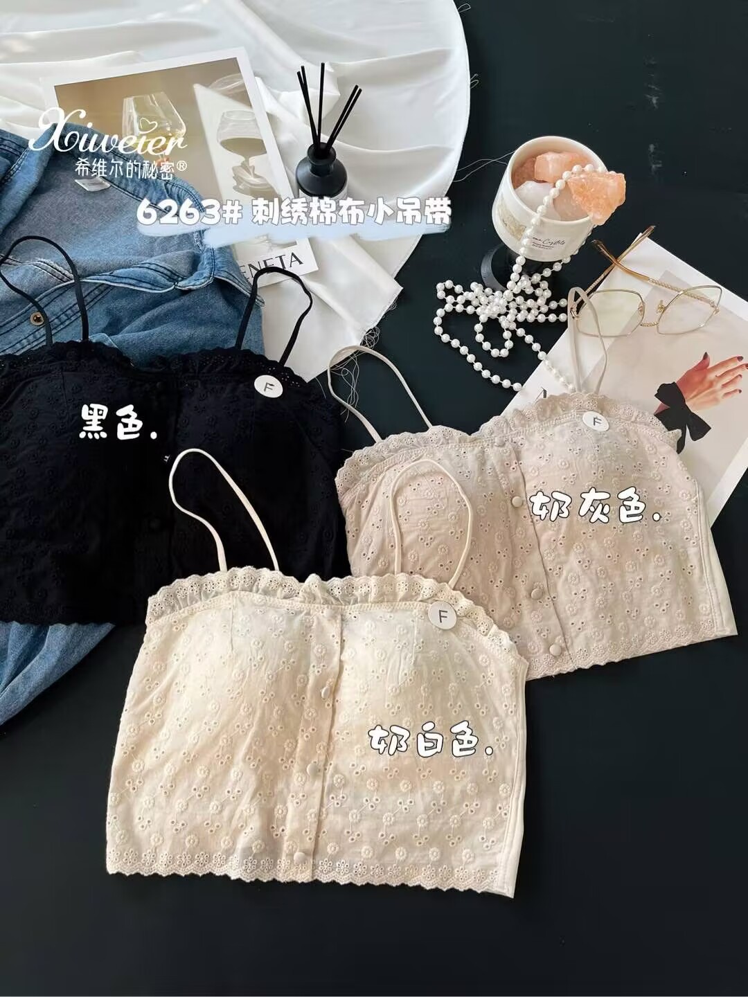 니치 스트랩 착용 비 무거운 섹시한 면직물 튜브 가슴 짧은 스트랩 투인원 브래지어없는 내복