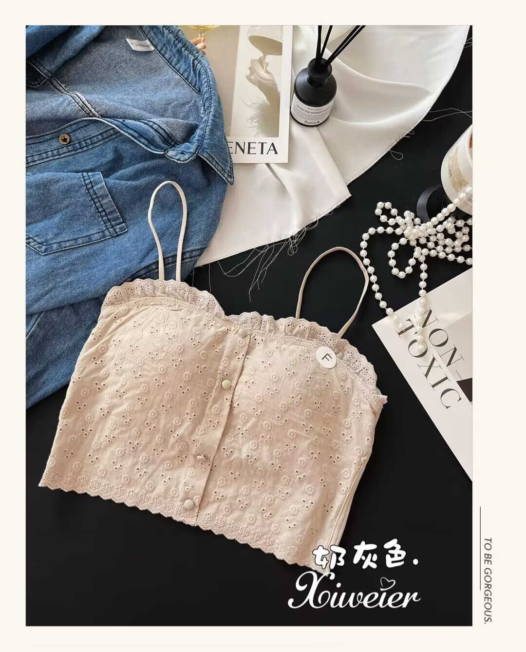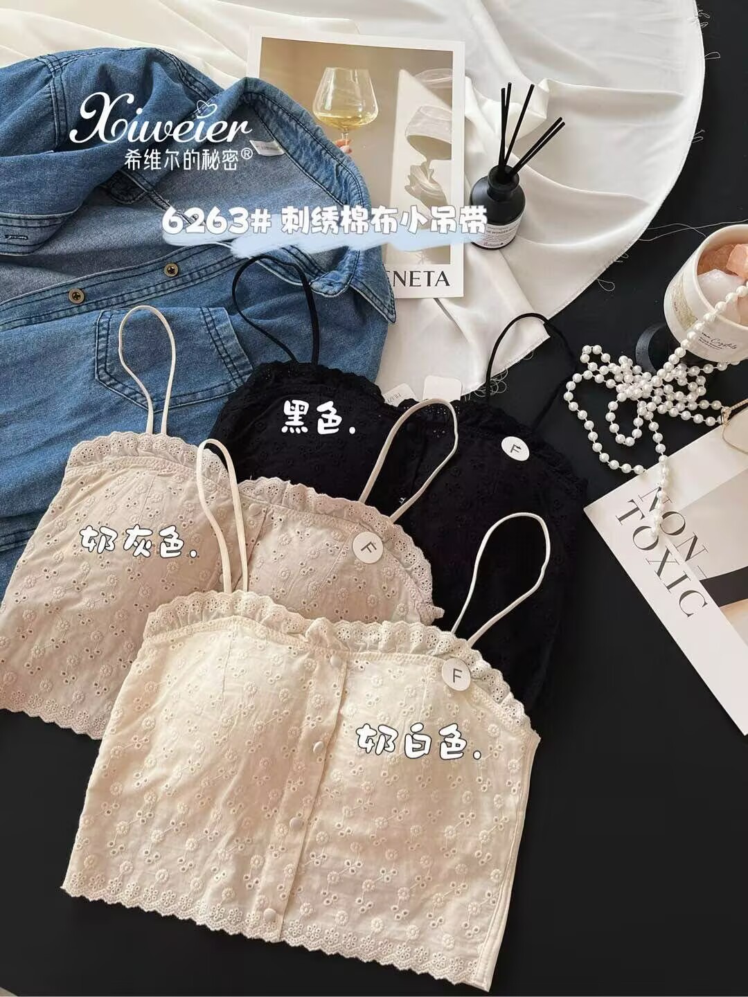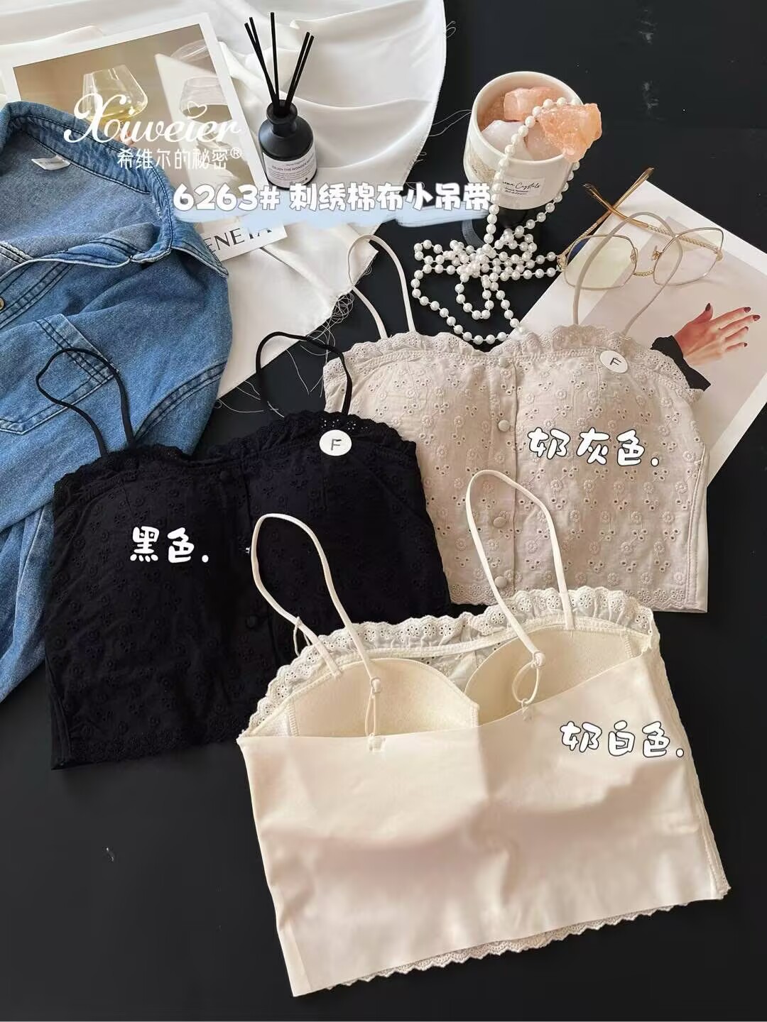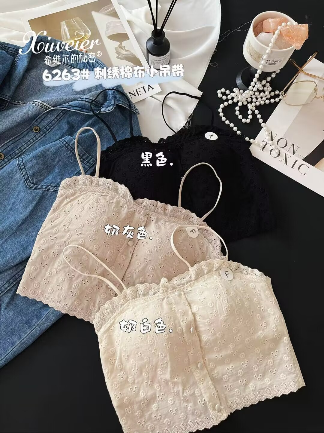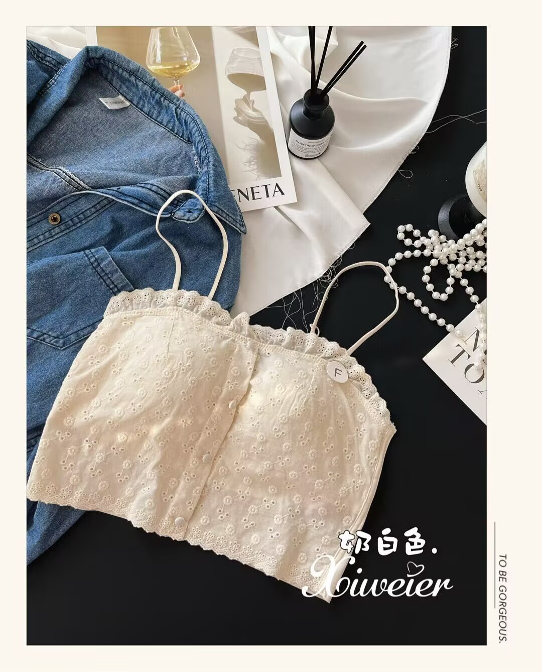 니치 스트랩 착용 비 무거운 섹시한 면직물 튜브 가슴 짧은 스트랩 투인원 브래지어없는 내복