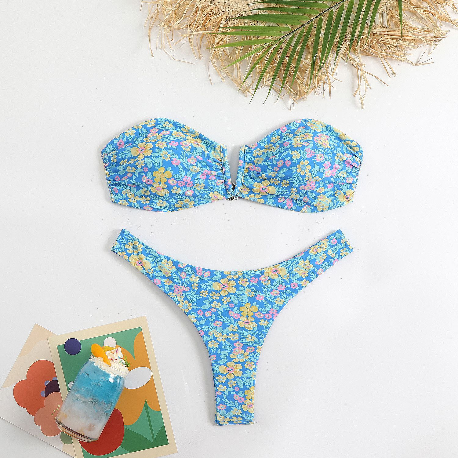 2025 유럽과 미국의 새로운 분할 수영복 여성의 섹시한 삼각형 가방 목 벨트 비키니 아마존 대외 무역 온천 수영복스토어 가기