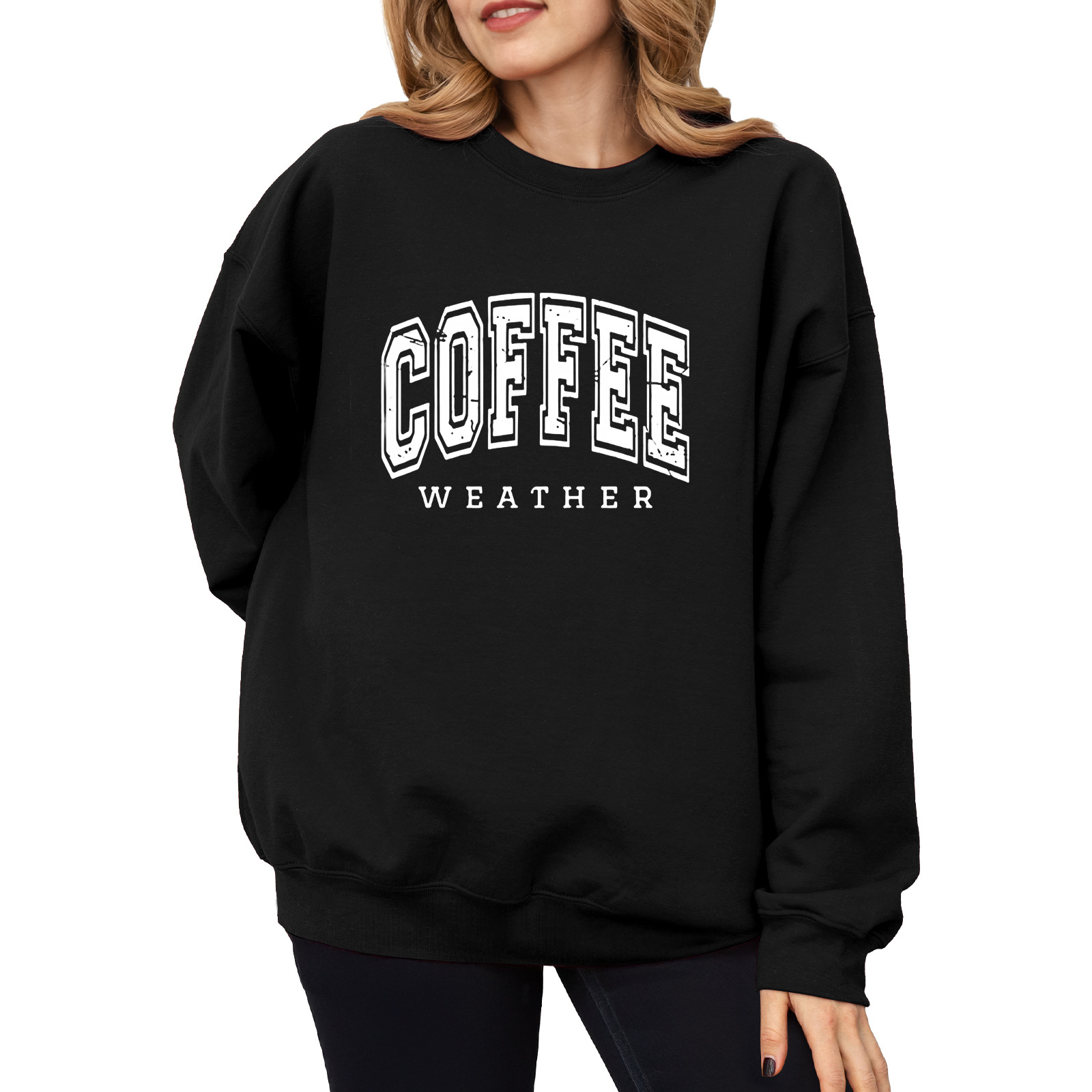 유럽과 미국의 아마존 가을과 겨울 이베이 독립적 인 둥근 목 긴 소매 속이 빈 프린트 여성용 스웨터스토어 가기