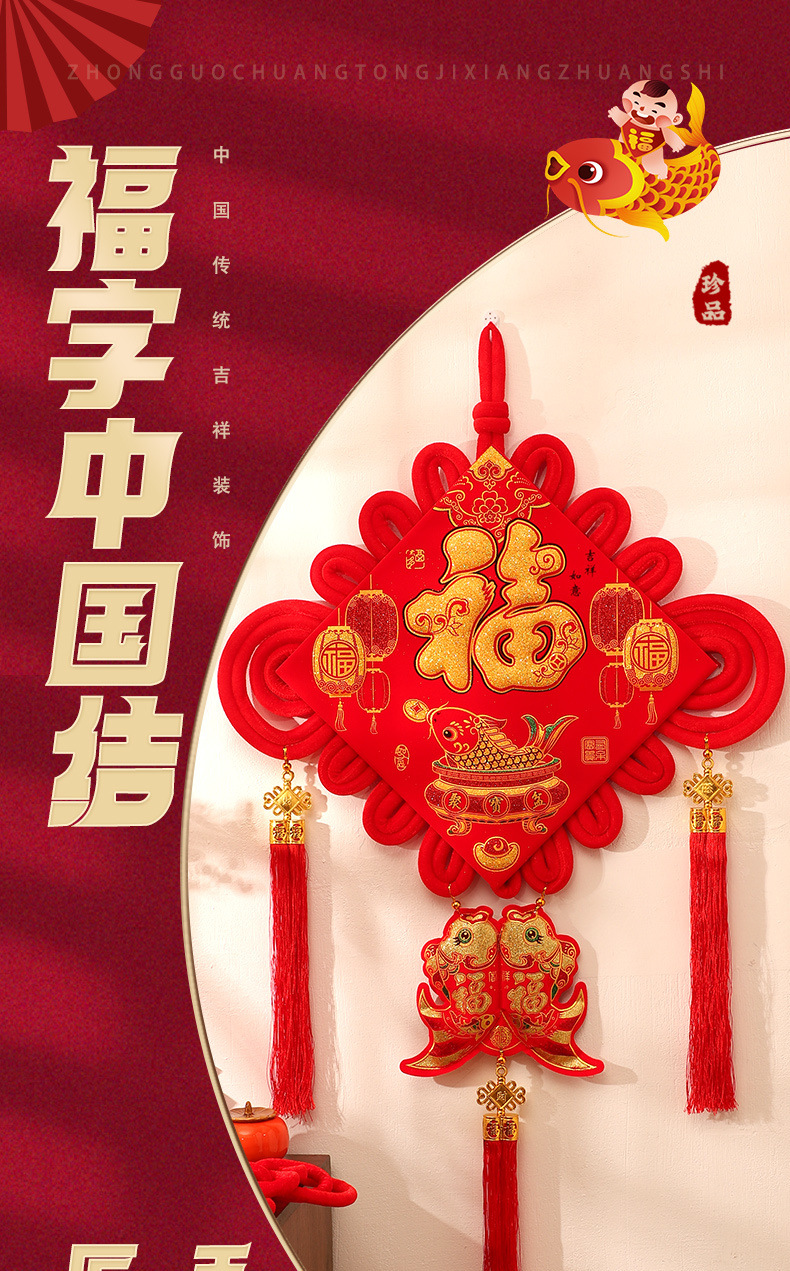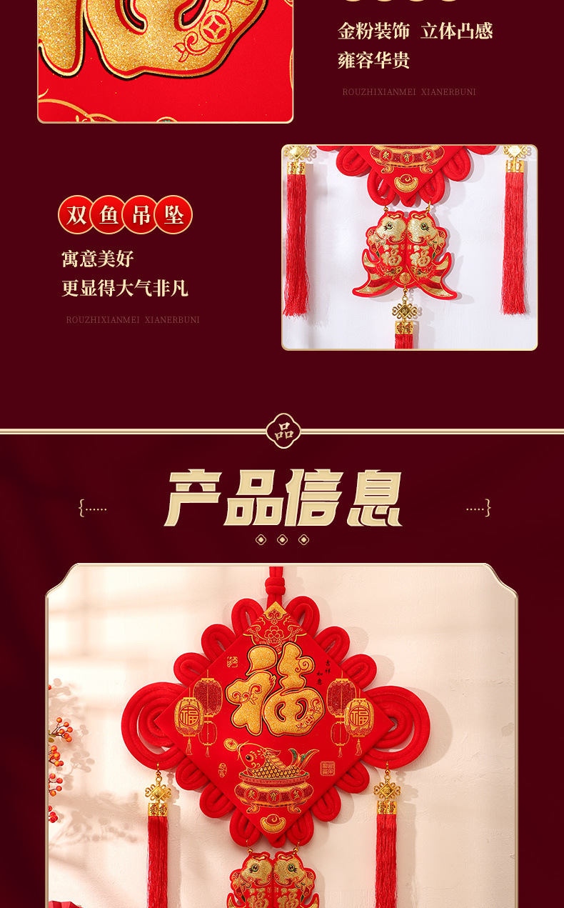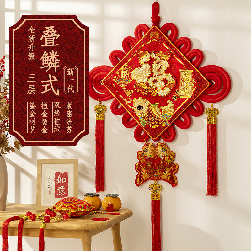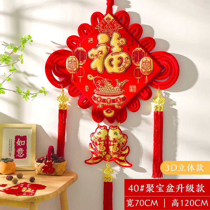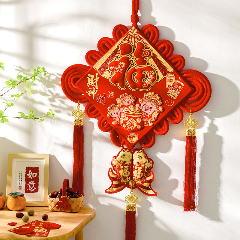 중국 매듭 새 스타일 펜던트 거실 봄 축제 새로운 복도 거실 3 차원 푸 캐릭터 스티커 벽 교수형 축제 펜던트스토어 가기