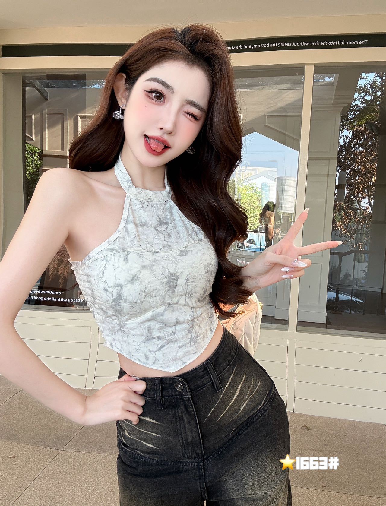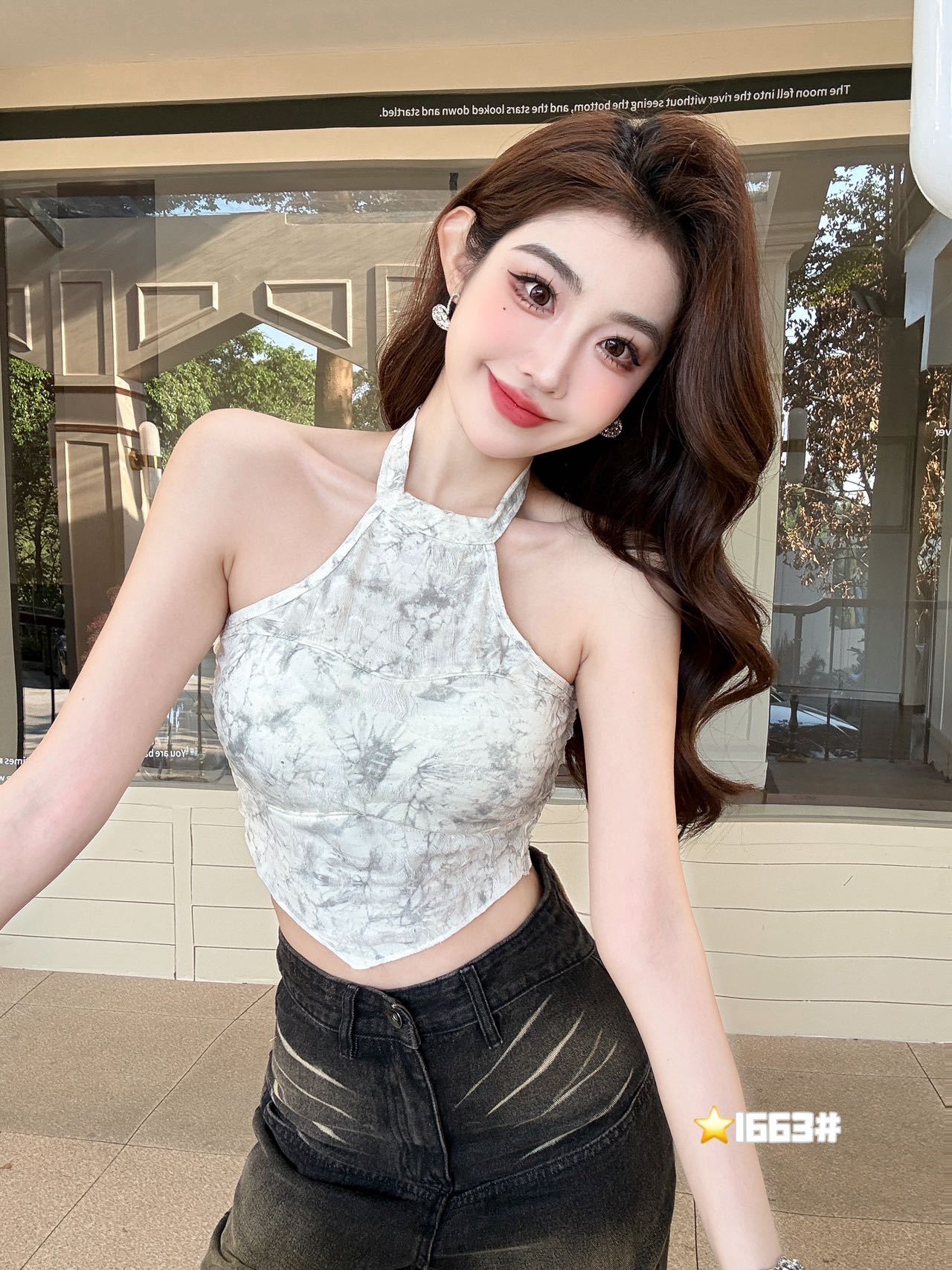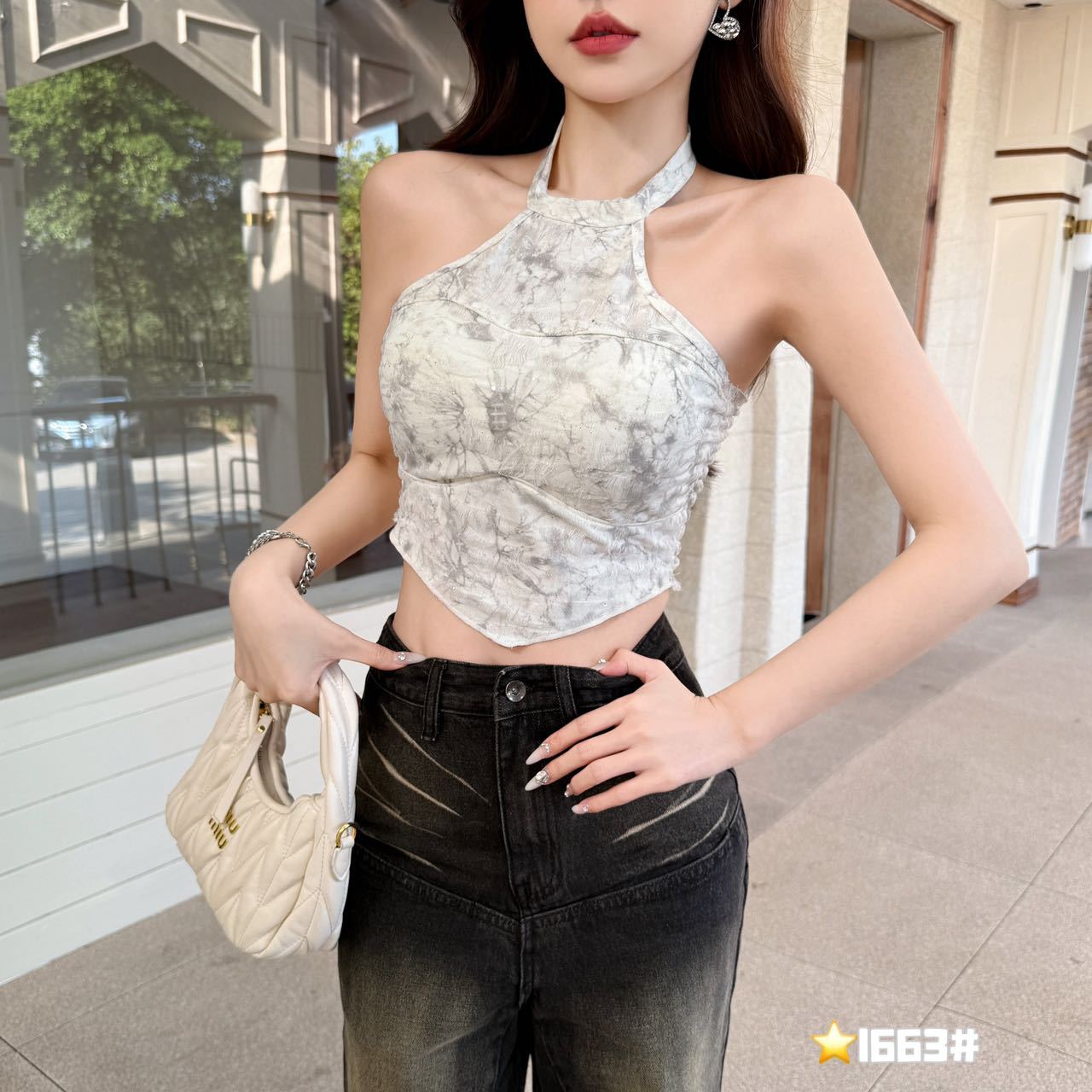 불규칙한 헴 디자인 어두운 패턴 패션 홀터 스트랩 고정 비 러닝 컵 탄성 아름다운 뒷옷스토어 가기