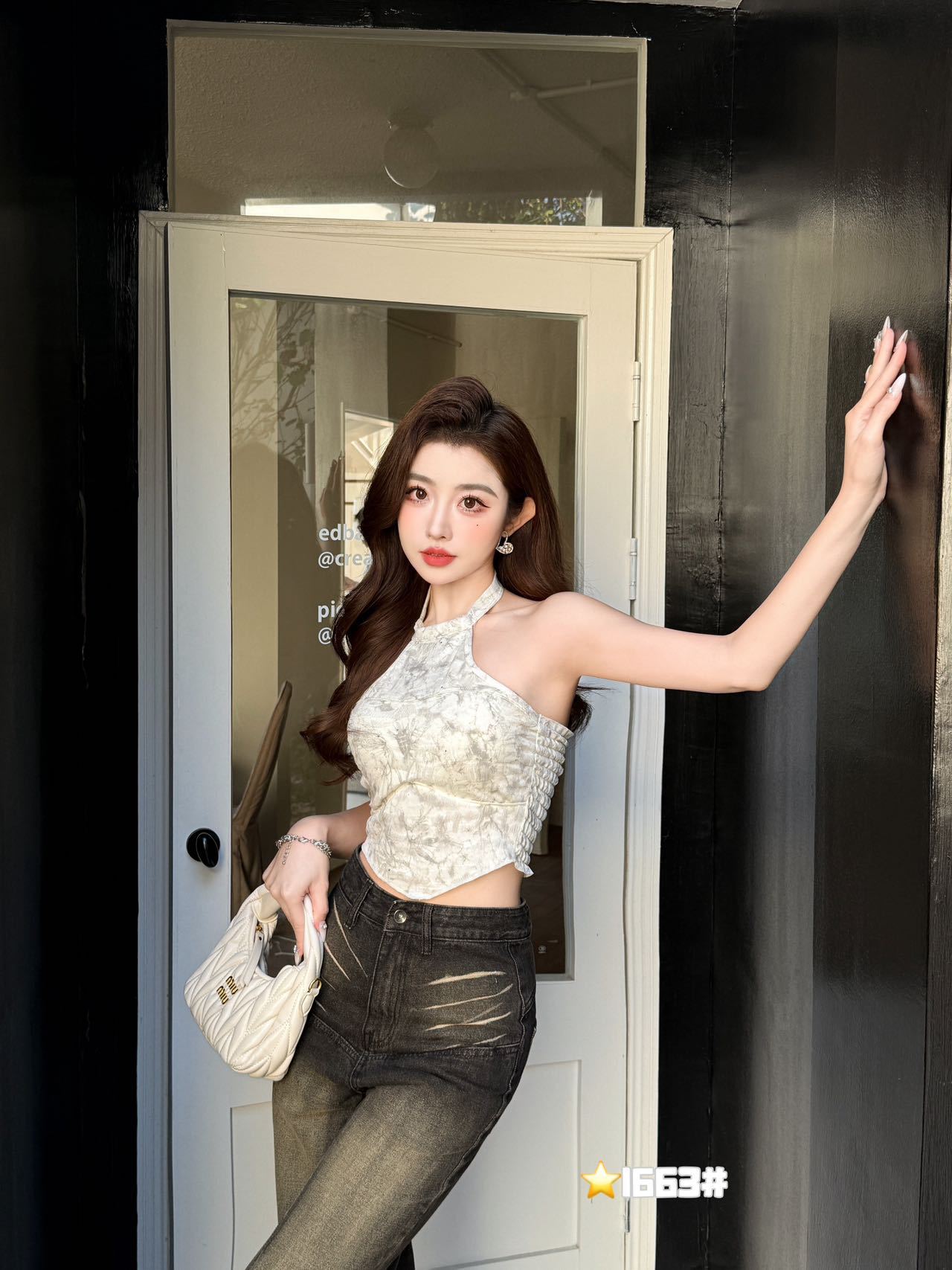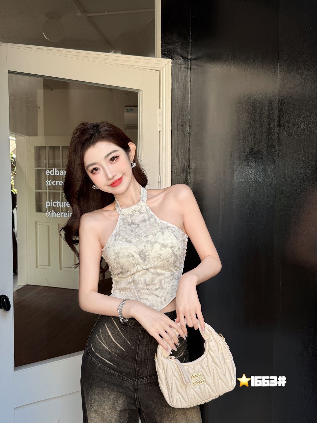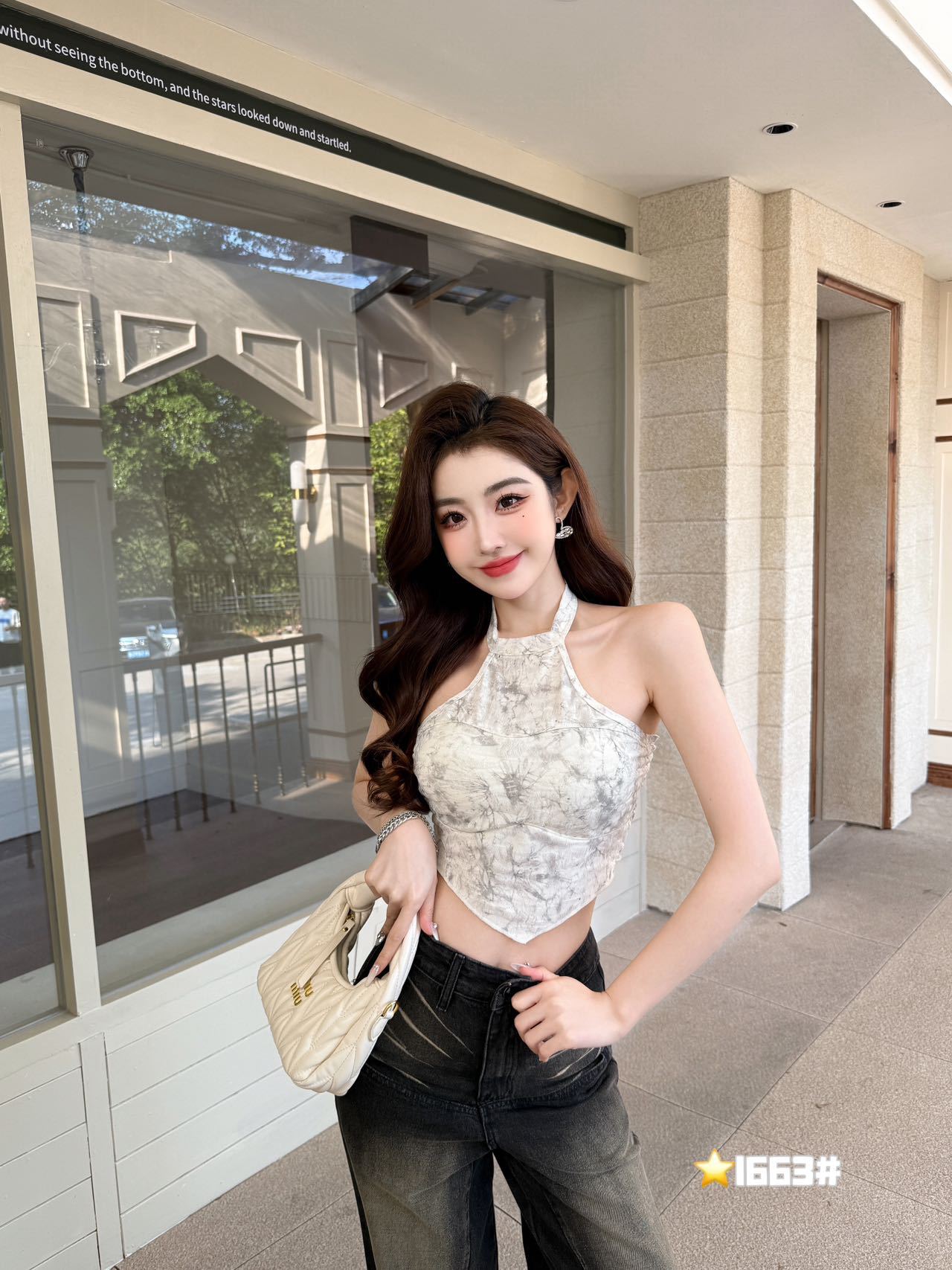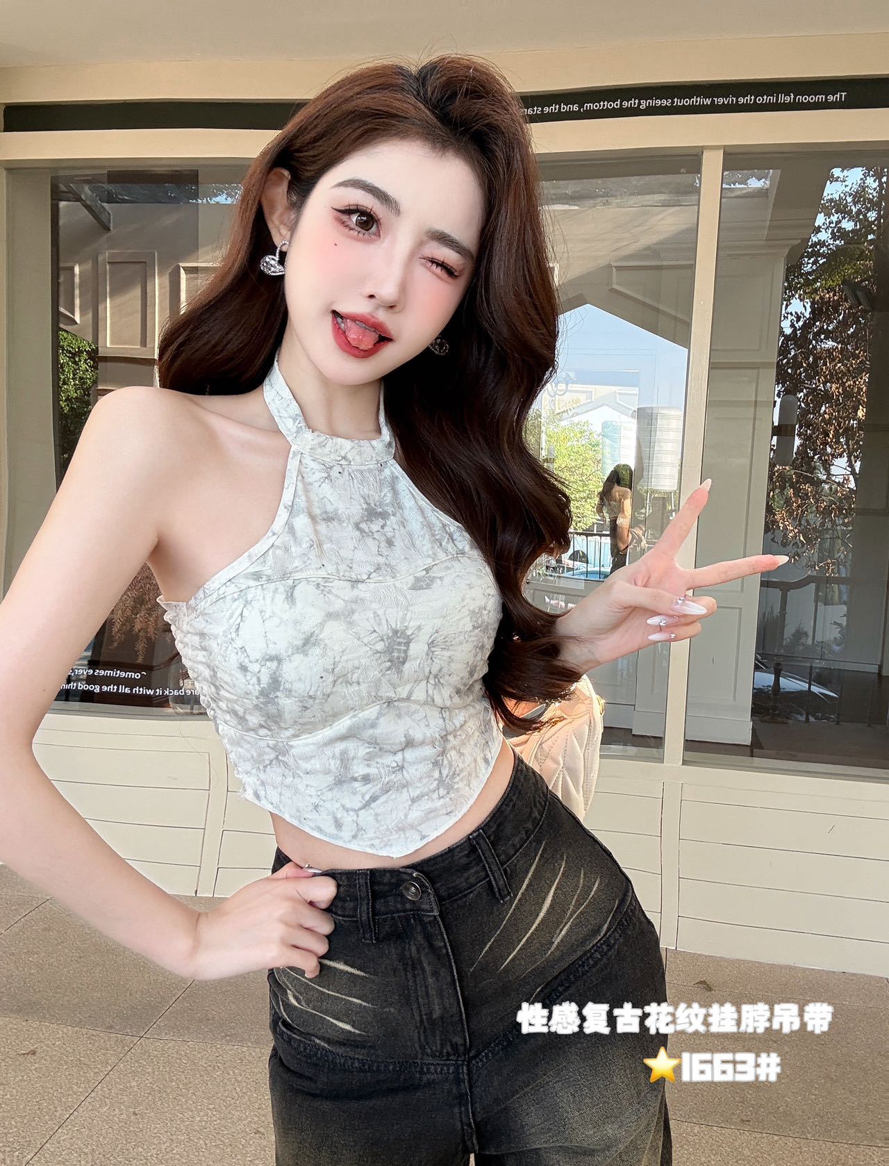 불규칙한 헴 디자인 어두운 패턴 패션 홀터 스트랩 고정 비 러닝 컵 탄성 아름다운 뒷옷스토어 가기