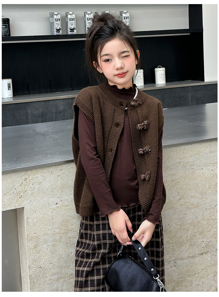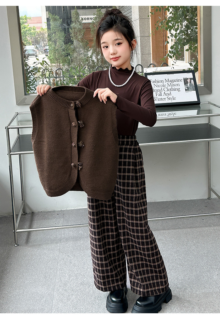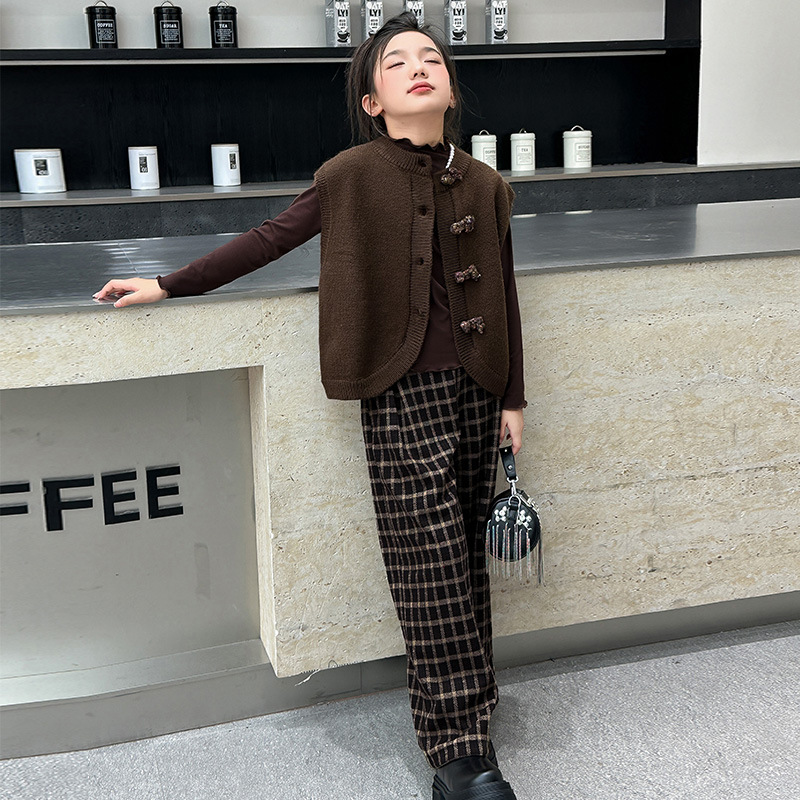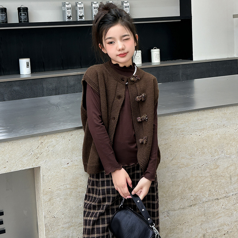 소녀 니트 조끼 세트 봄과 가을 2025 새로운 봄 소녀 한국 스타일 패션 대외 무역