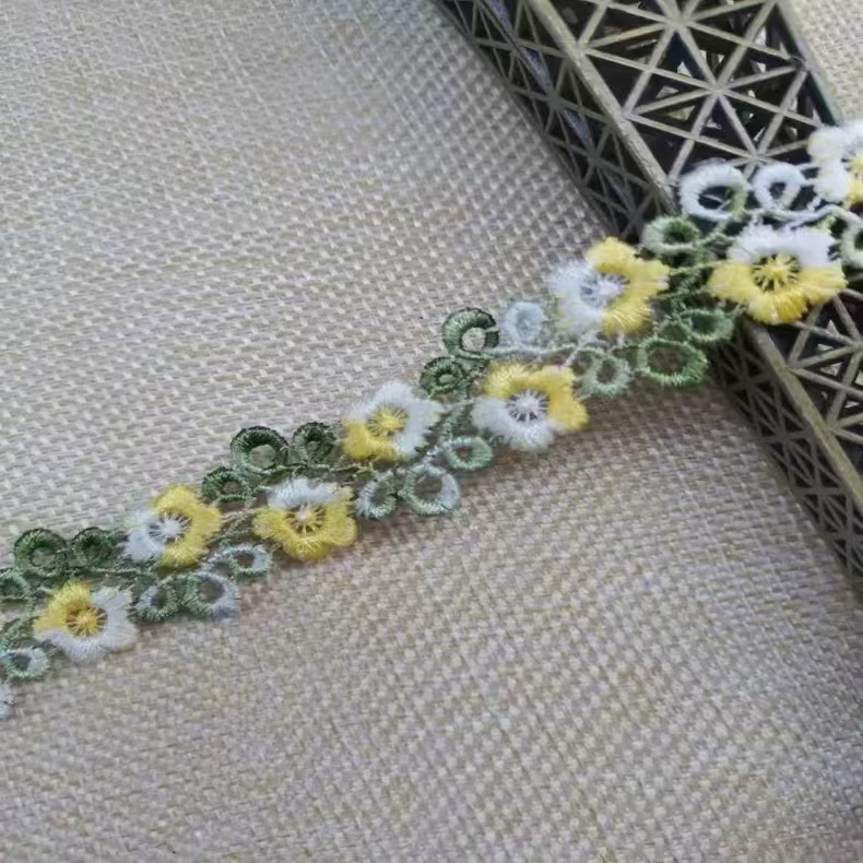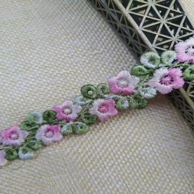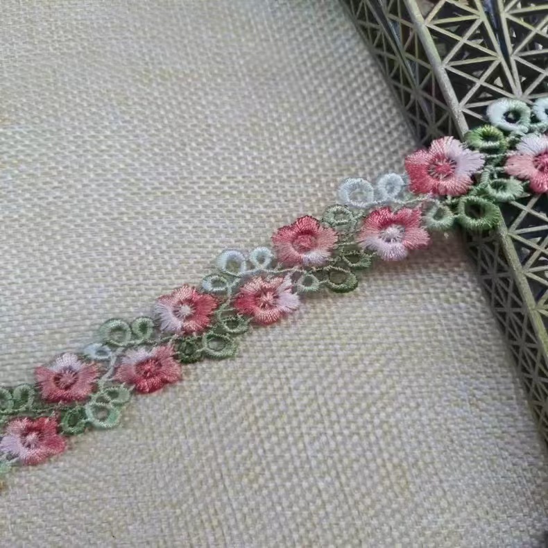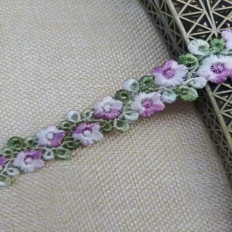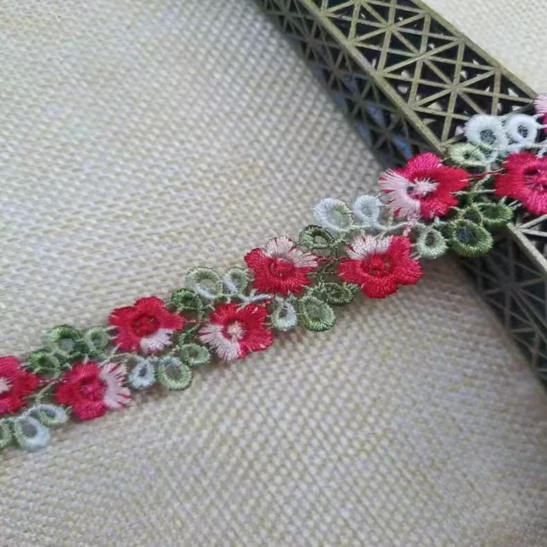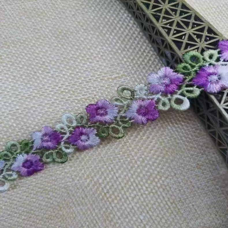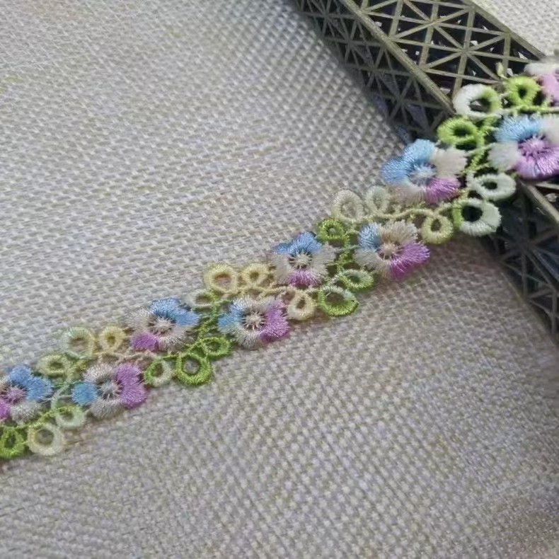 2CM 수용성 자수 레이스 다채로운 세그먼트 염색 라인 더블 행 매화 꽃 의류 액세서리 헤어핀 수용성 바코드 꽃스토어 가기
