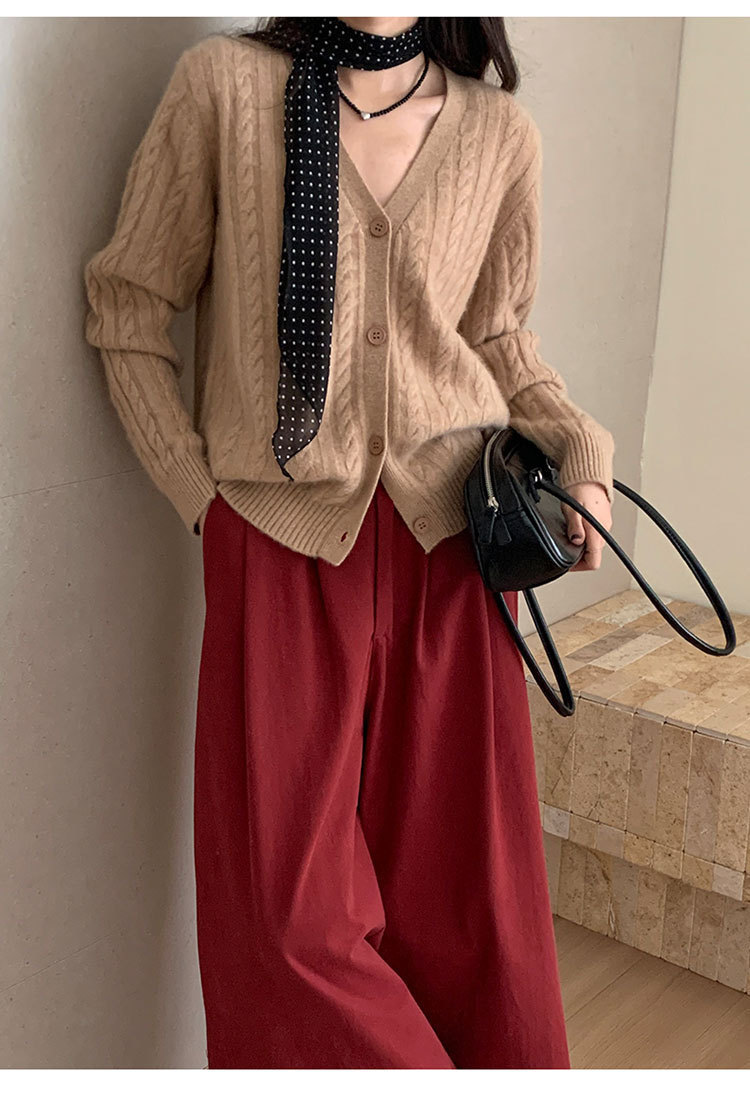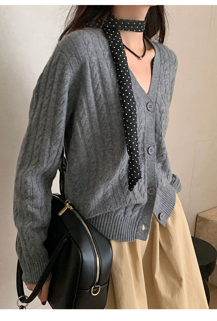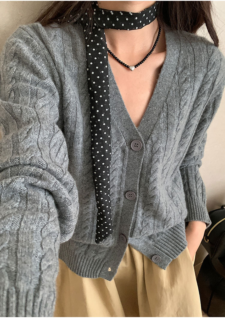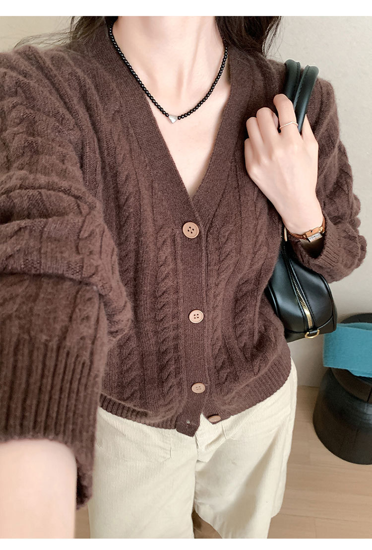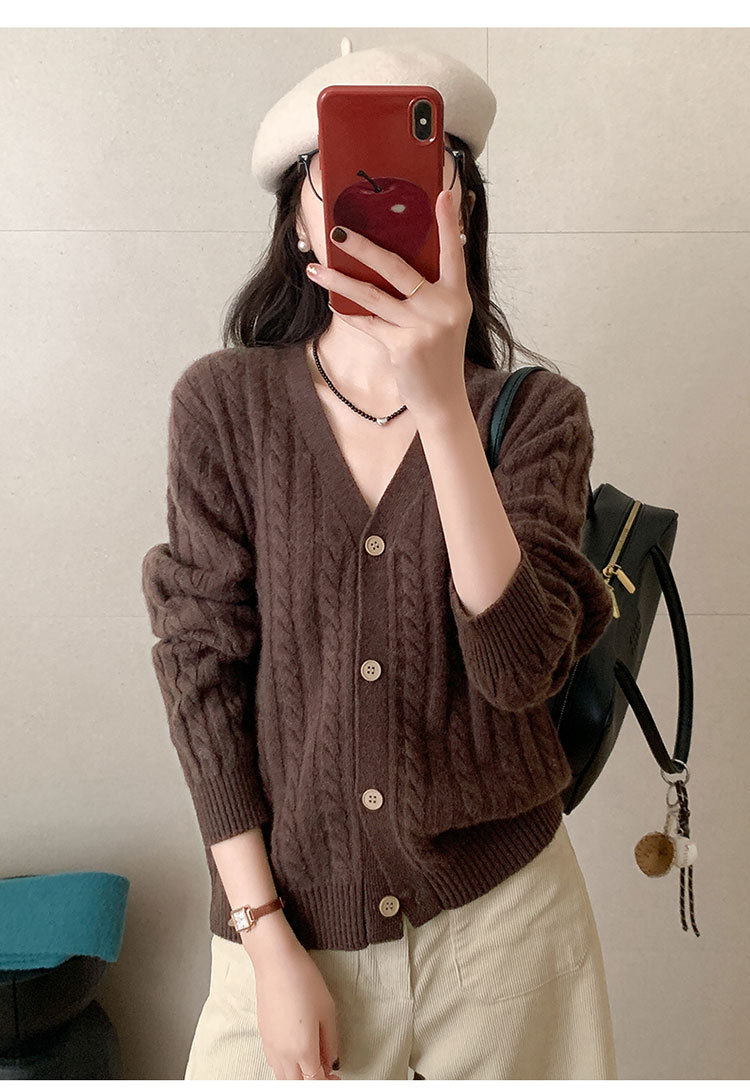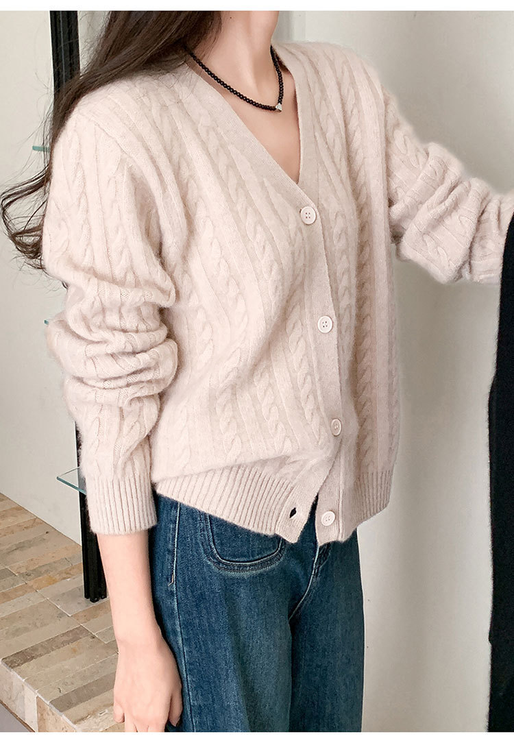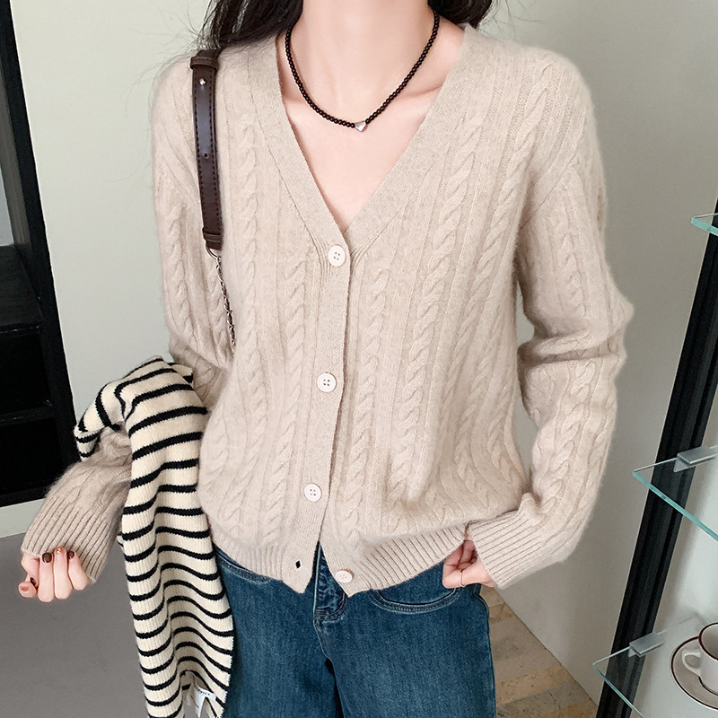 100 울 V 넥 스웨터 카디건 여성 가을 및 겨울 코트 게으른 스타일 루즈 빈티지 트위스트 니트 탑스토어 가기