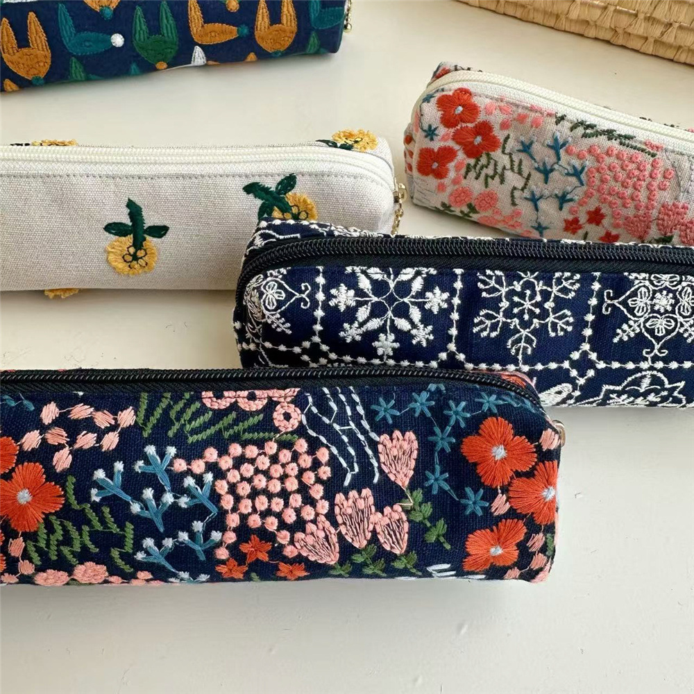 새로운 부티크 손으로 만든 자수 연필 가방 꽃 연필 가방 보관 가방 문구 보관 가방 면 연필 가방 화장품 가방스토어 가기