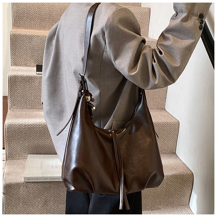 빈티지 대용량 크로스 바디 백 여성 겨울 2024 새로운 유행 한국 토트 백 간단한 언더암 가방스토어 가기
