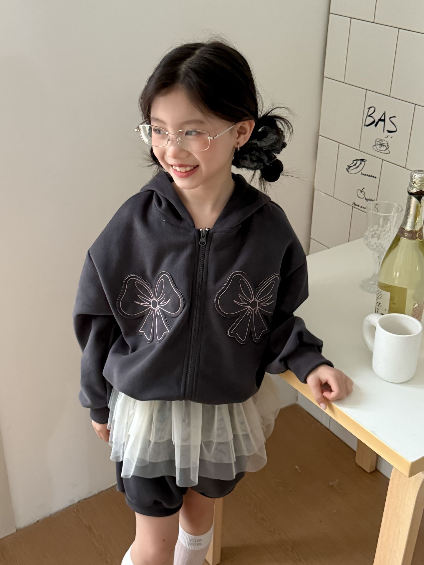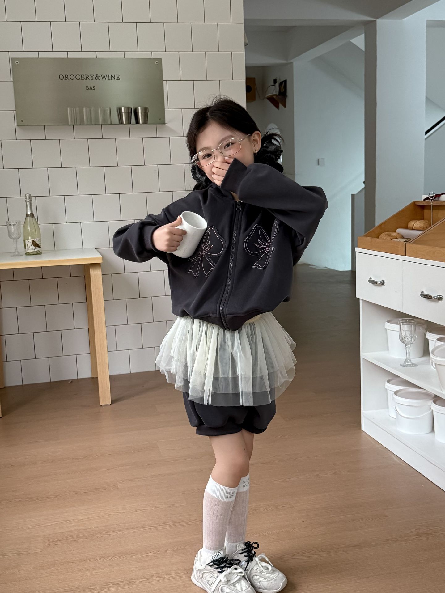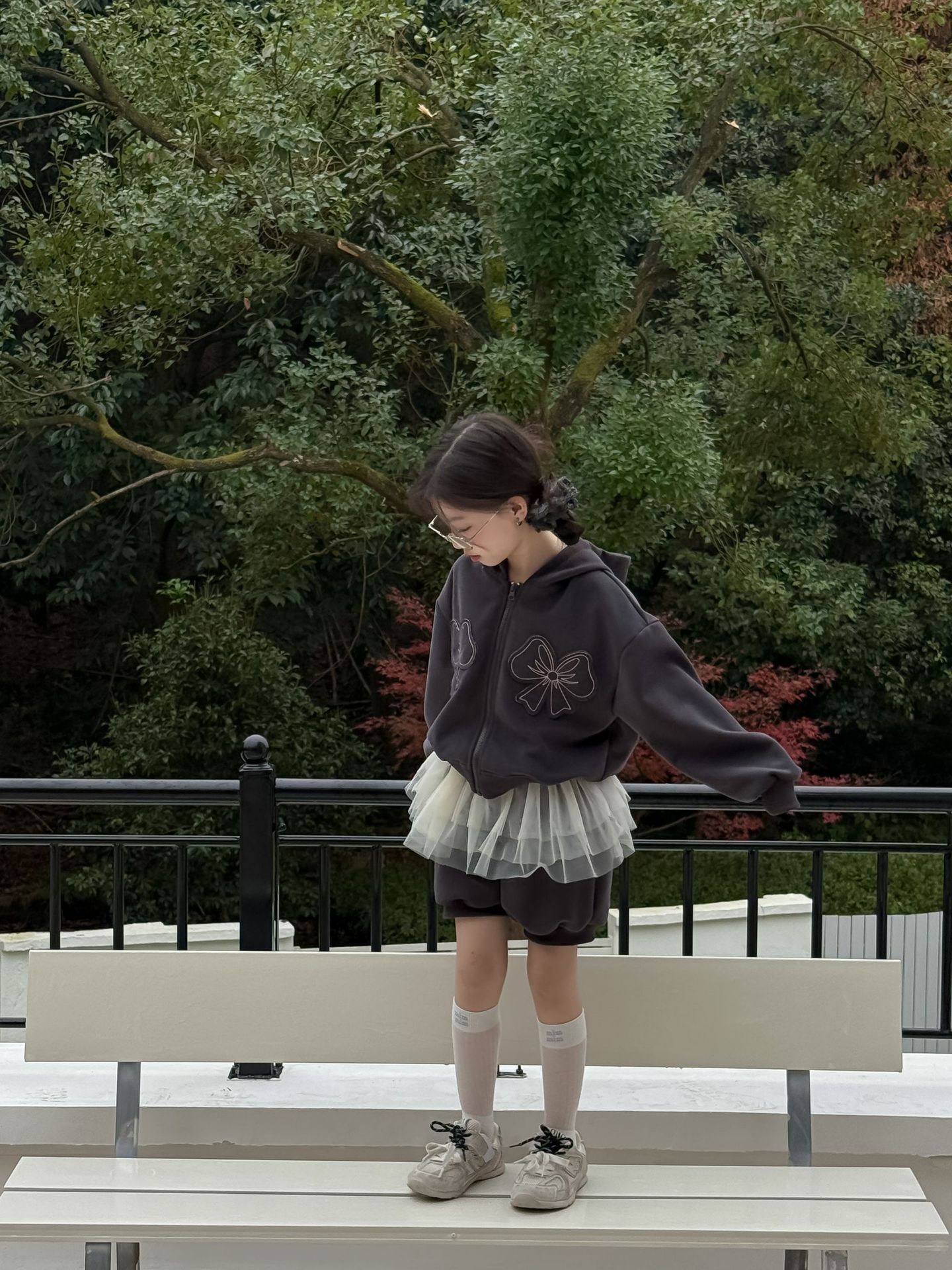 어린이 세트 2025 봄 귀여운 소녀의 활 자수 후드 카디건 재킷 반바지 원사 앞치마 3 피스 세트