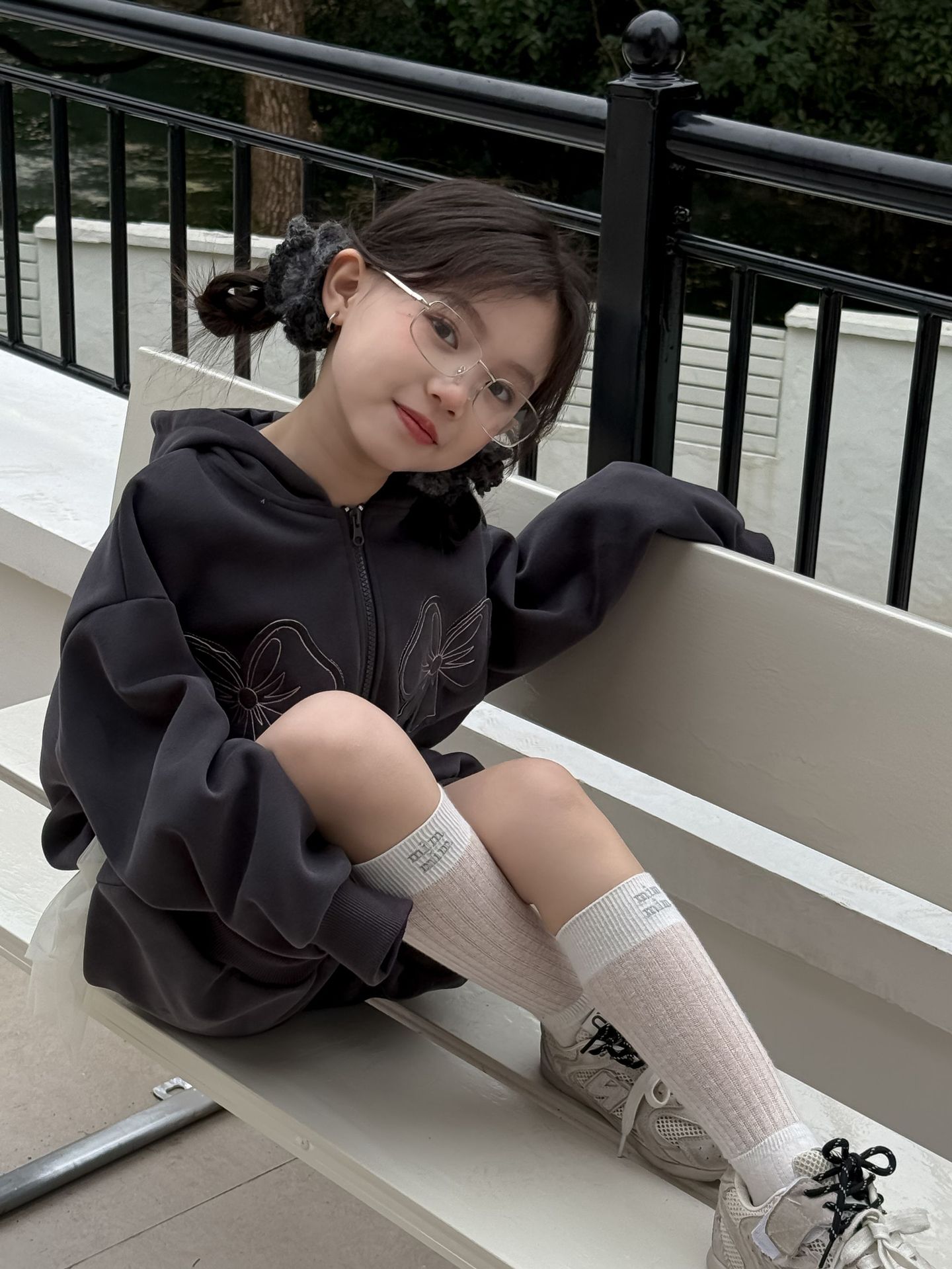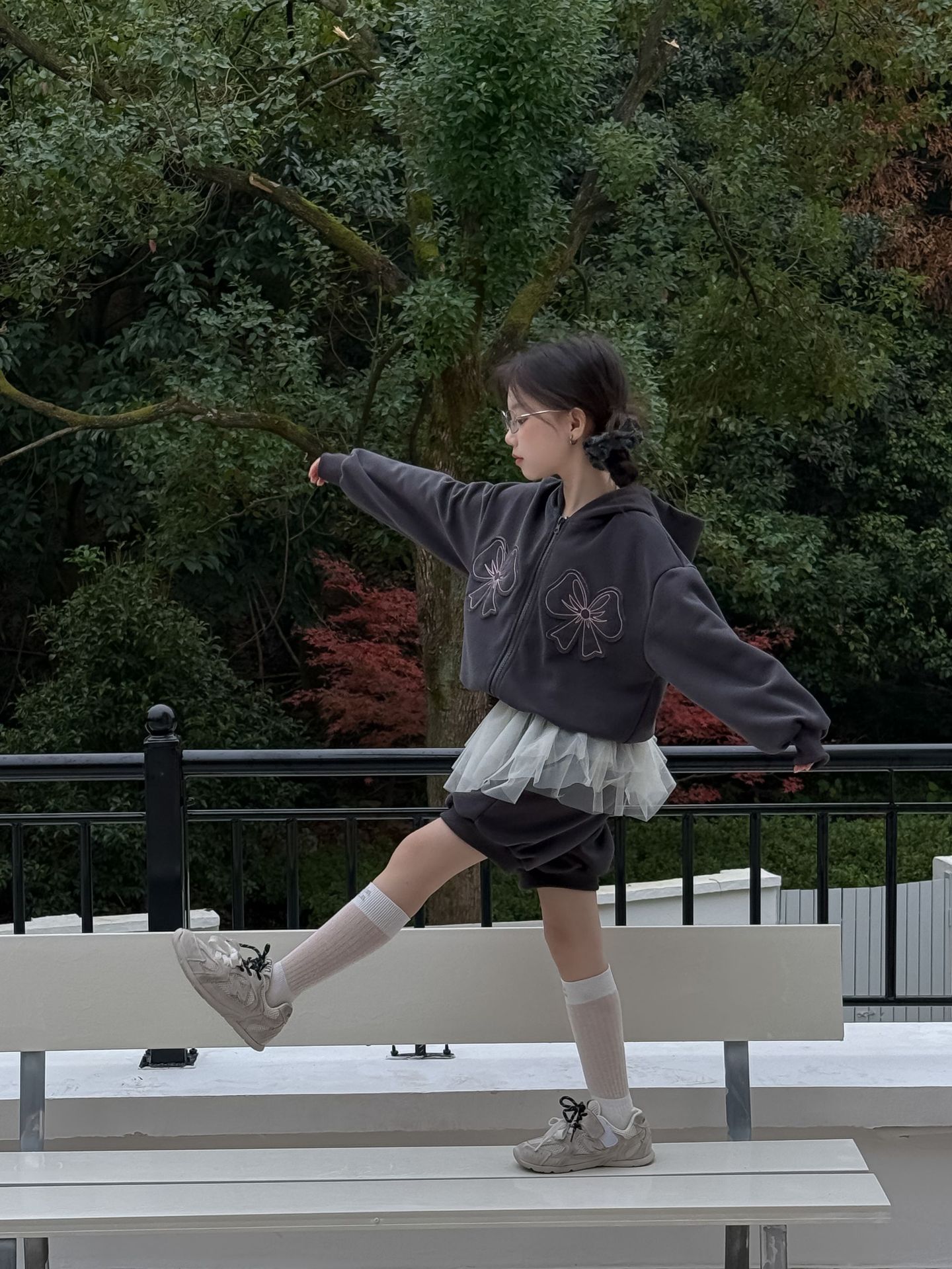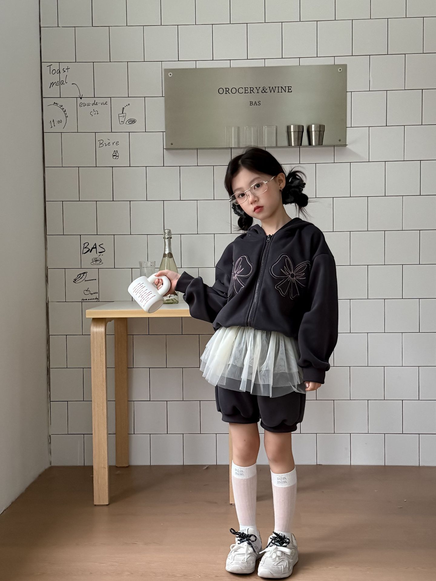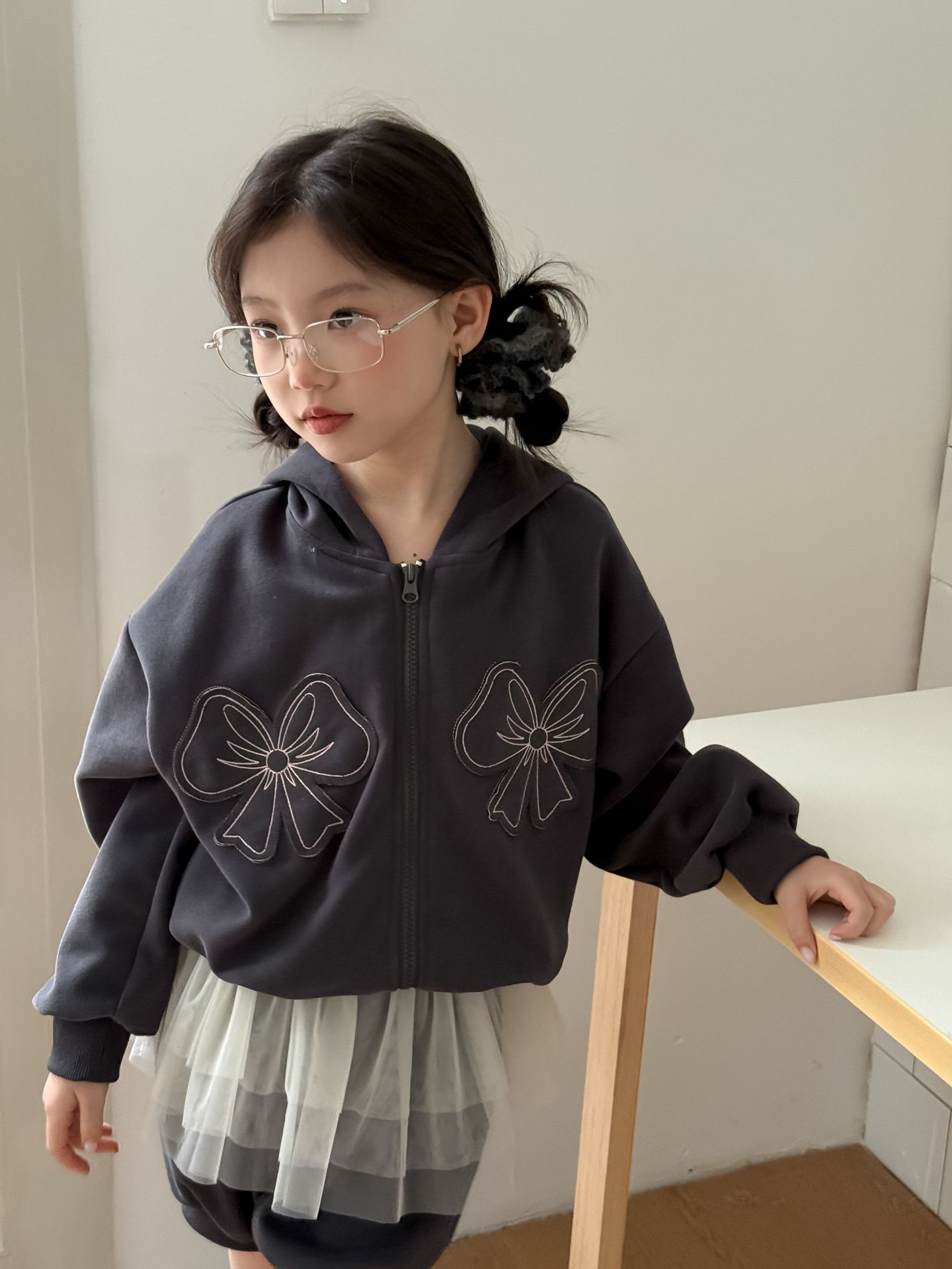 어린이 세트 2025 봄 귀여운 소녀의 활 자수 후드 카디건 재킷 반바지 원사 앞치마 3 피스 세트