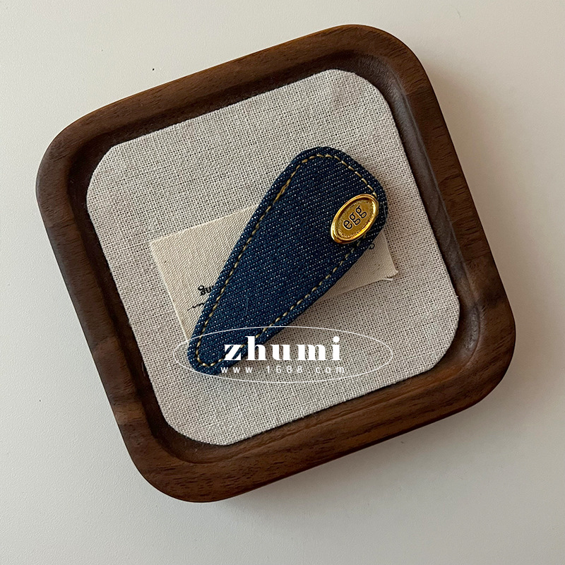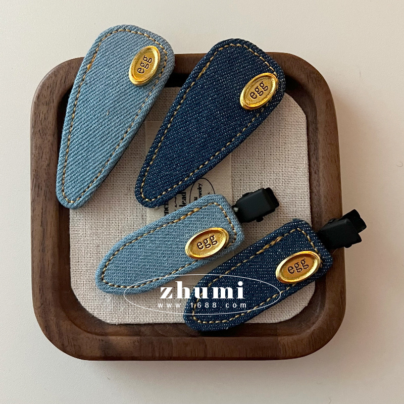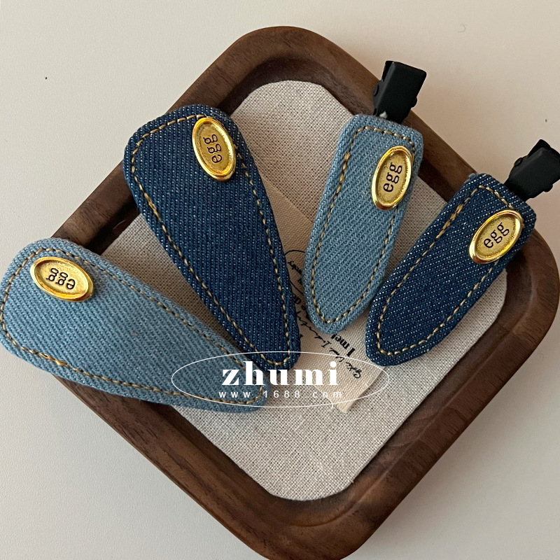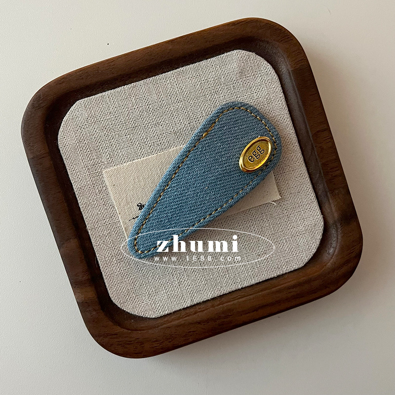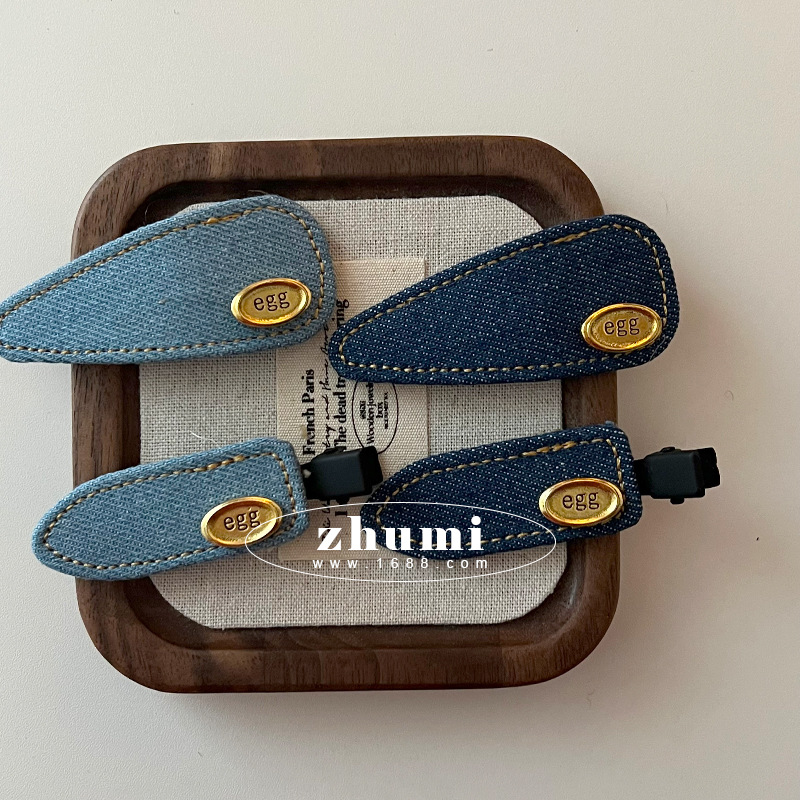 타원형 골드 로고 데님 블루 헤어핀 시니어 분위기 블루 기질 BB 클립 앞머리 클립 원활한 클립 헤어 액세서리 새로운스토어 가기
