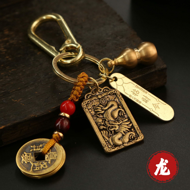 • 조디악 드래곤 + 오제 동전 + 구리 조롱박 + 행운의 주문 + 카라비너 - 황동 스타일