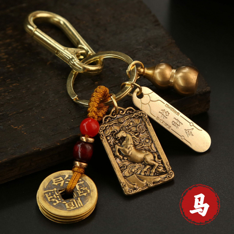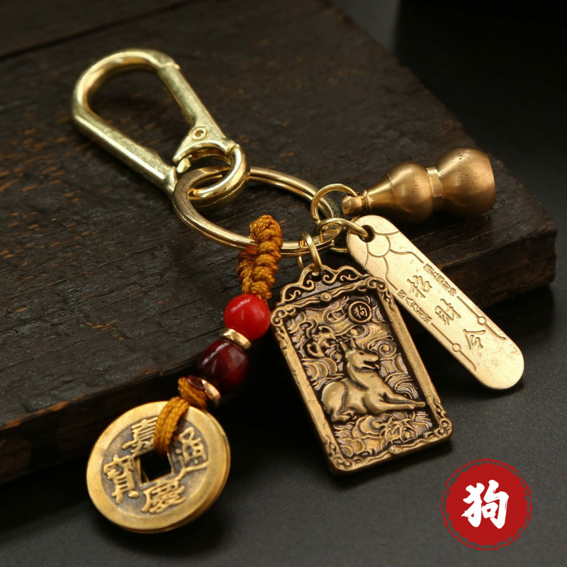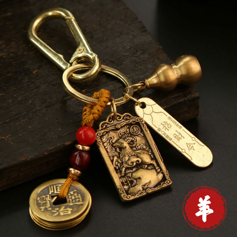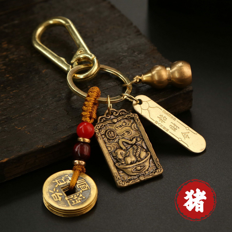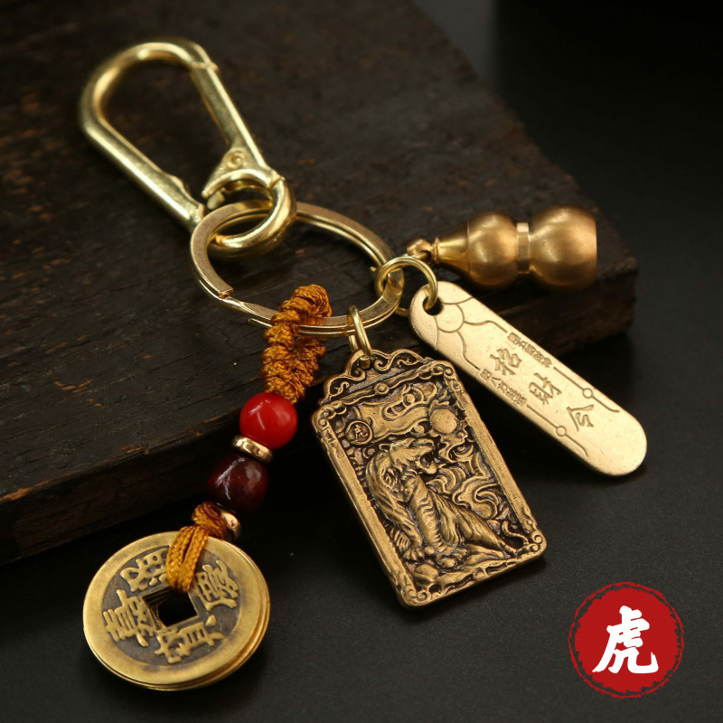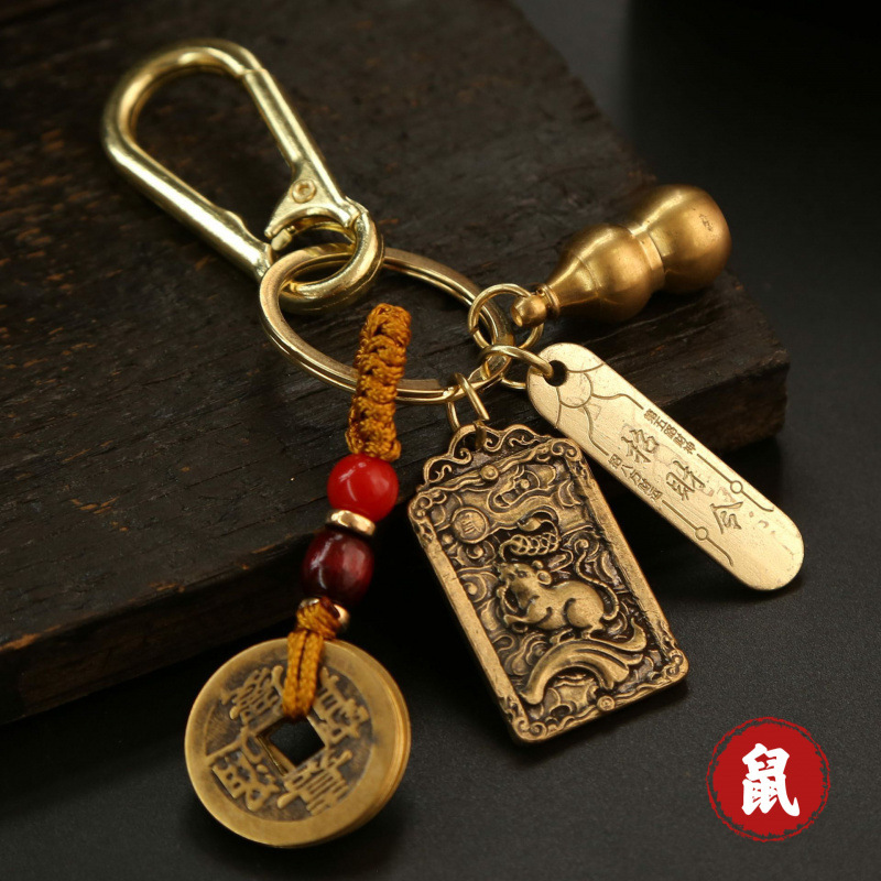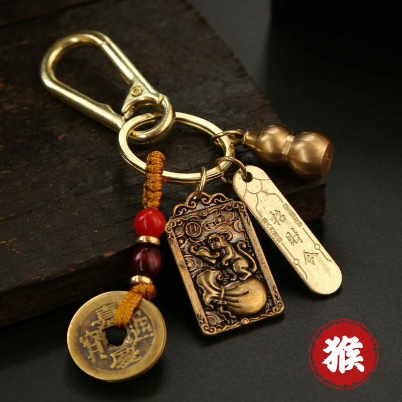 순수한 황동 조디악 키 체인 우신 부 자오 공밍 펜던트 산과 평화 펜던트를위한 등산 버킷