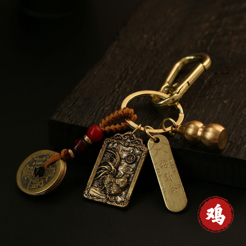 • 조디악 닭 + 오제 동전 + 구리 조롱박 + 행운의 주문 + 카라비너 - 황동 스타일