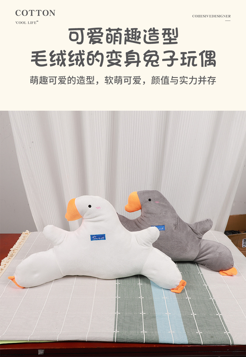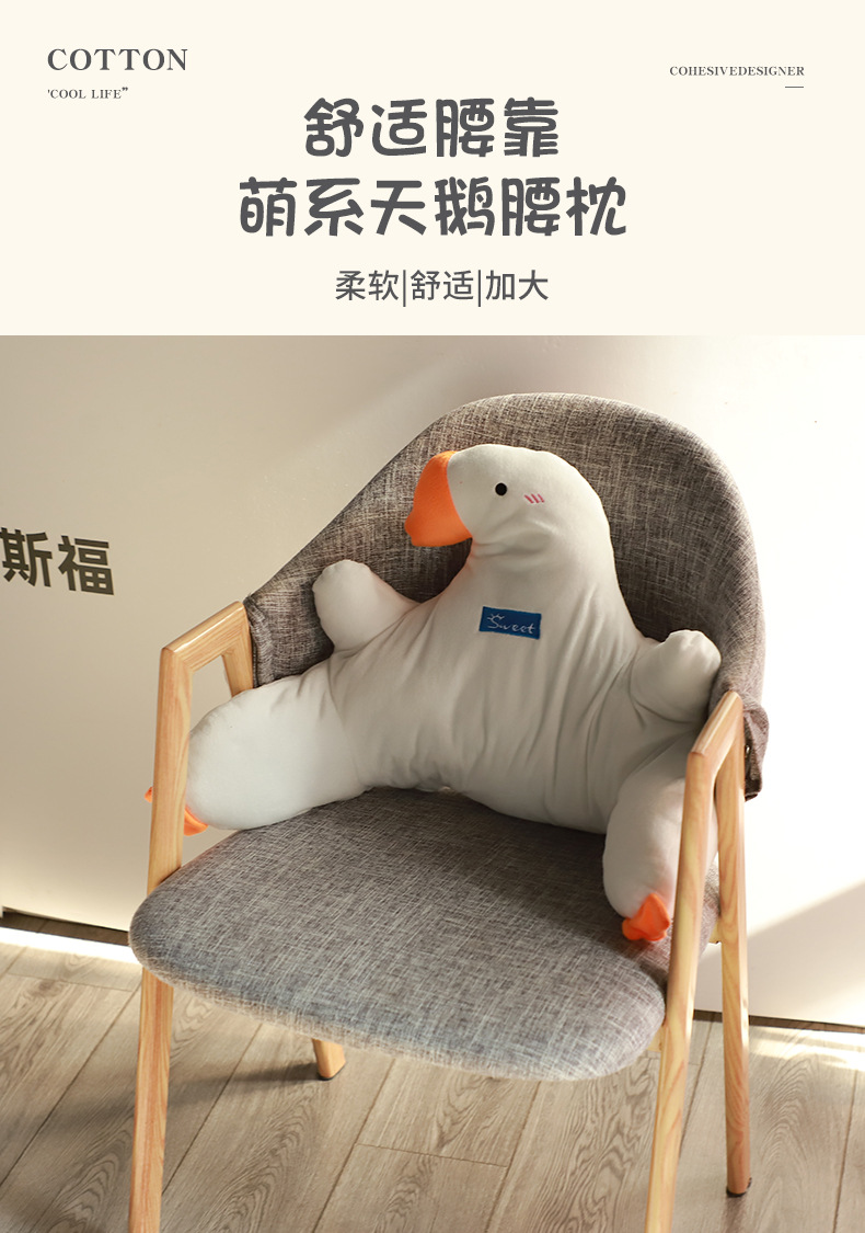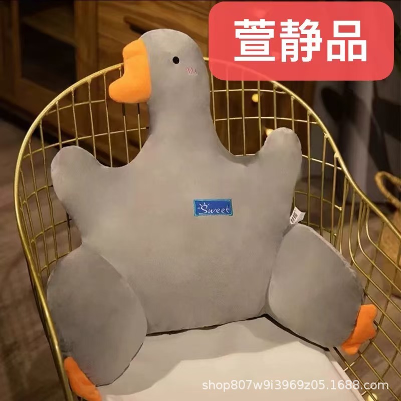 대형 흰색 거위 사무실 등받이 쿠션 자동차 허리 쿠션 학생용 베개 기숙사 어린이 의자 쿠션 일체형 인형