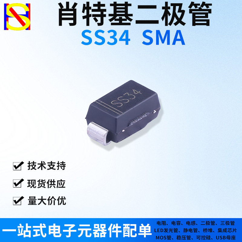 SS34 贴片肖特基二极管SMA SR340 3A/40V一站式电子元器件BOM配单 详情页_01