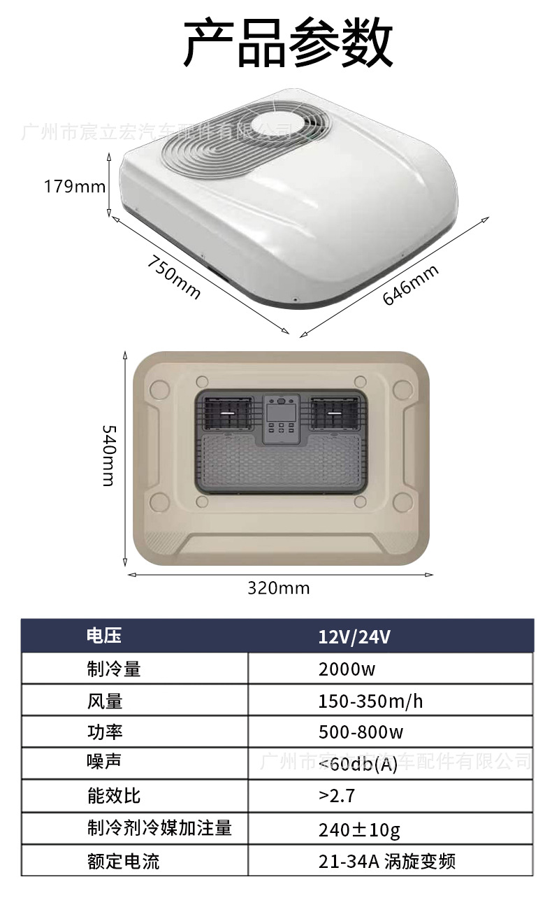• 12V-고급 대형 탑팬 에어컨 일체형 기계 EAC002.67.12