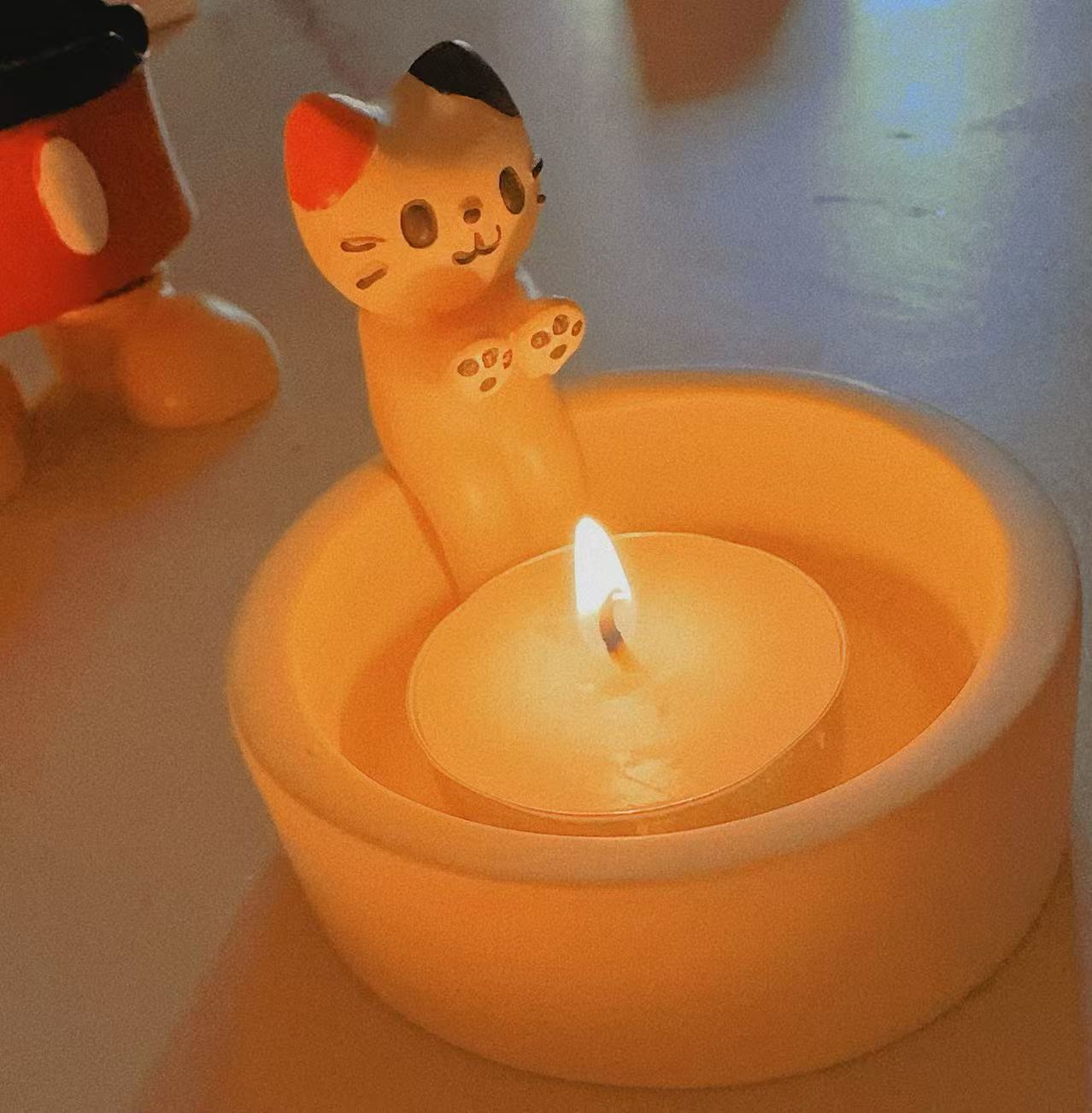 국경 간 새끼 고양이 창조적 인 촛대 만화 고양이 불 공예 양초 아로마 테라피 데스크탑 장식 도매스토어 가기