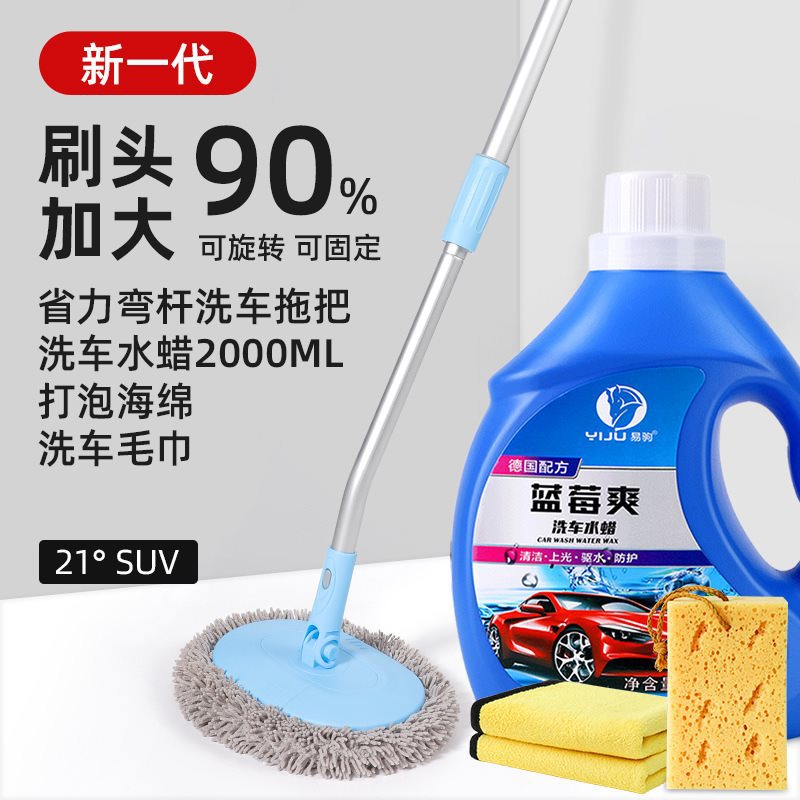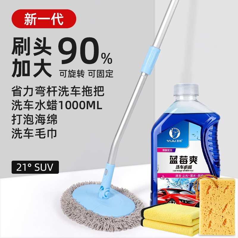 • 21°铝合金弯杆拖把+2斤洗车水蜡+毛巾+海绵