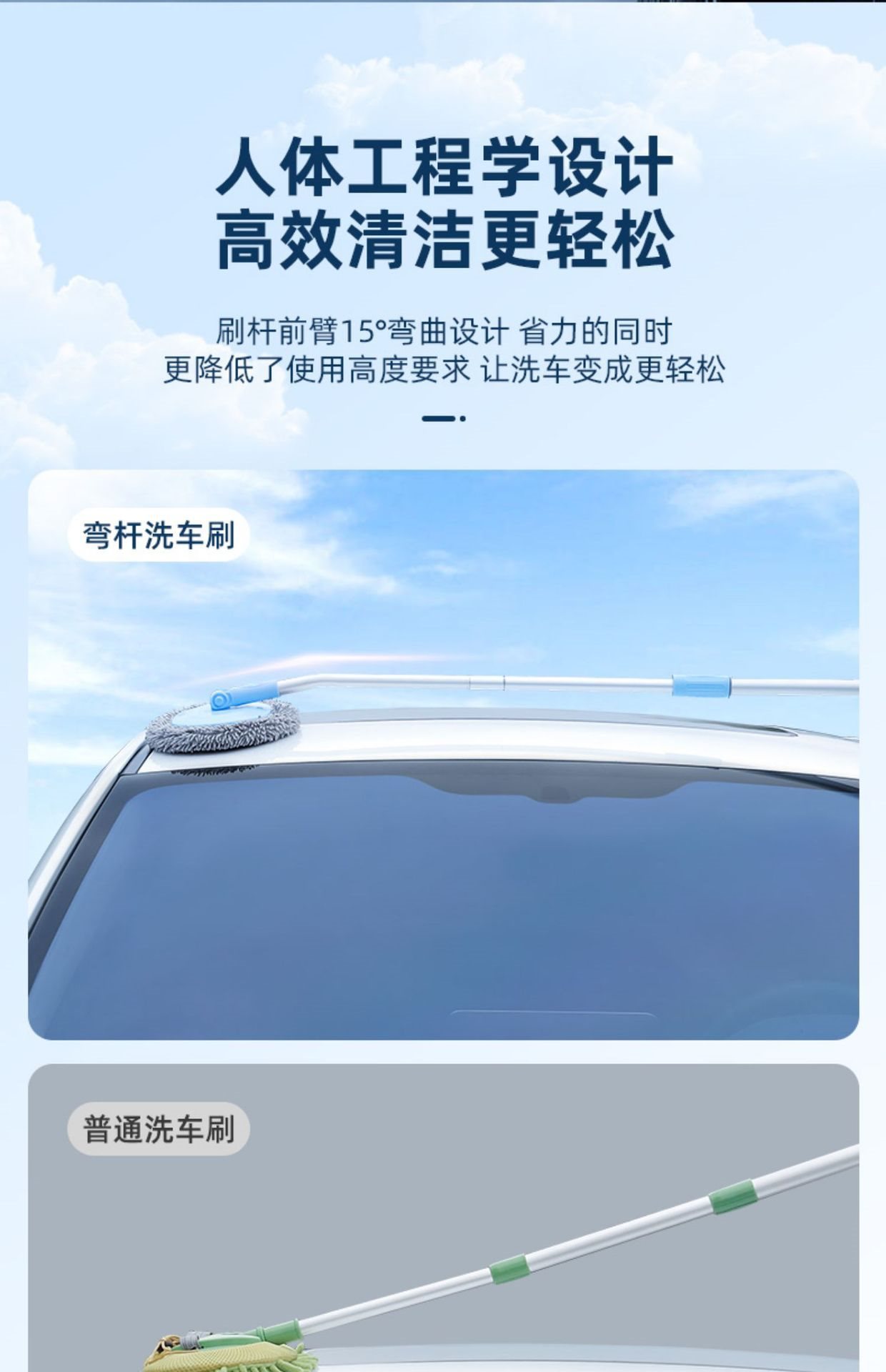 • 15°알루미늄 합금 곡선 막대 세차 걸레 + 교체용 브러시 헤드