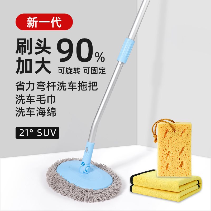 • 21°铝合金弯杆拖把+4斤洗车水蜡+毛巾+海绵