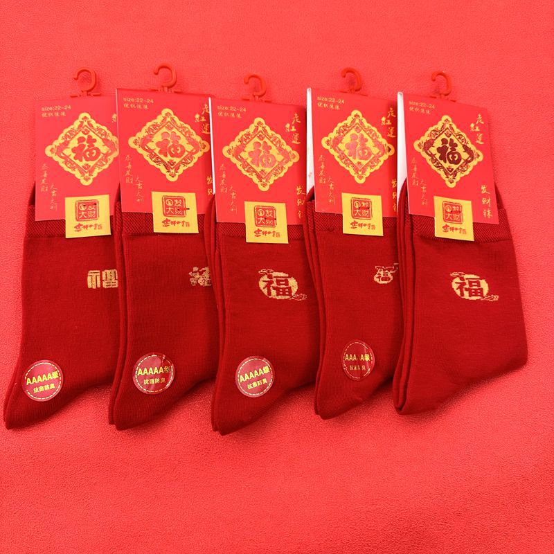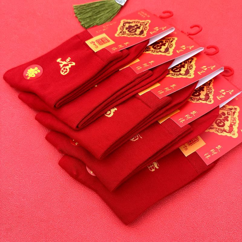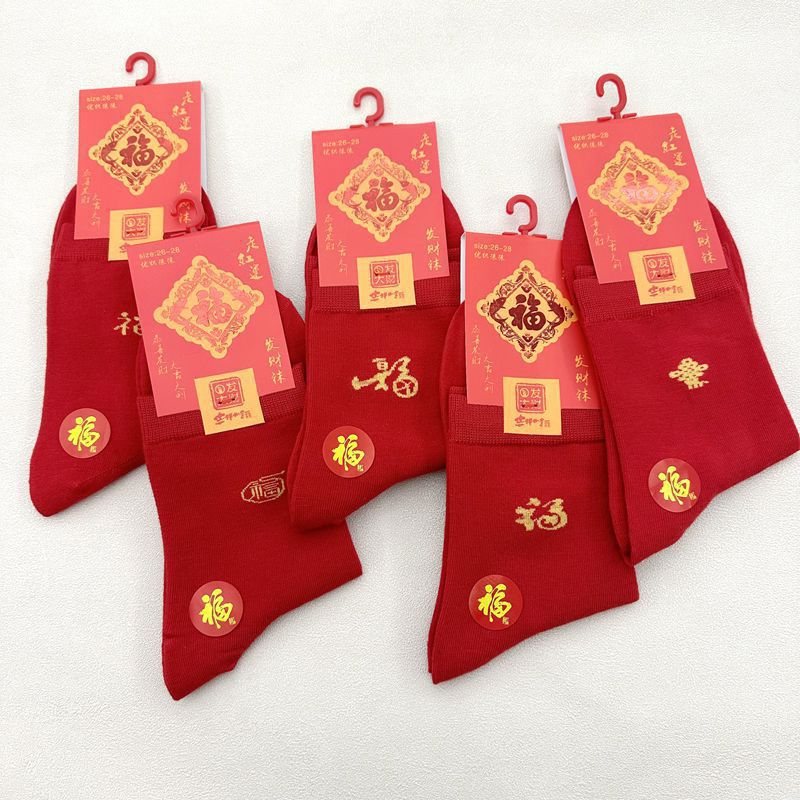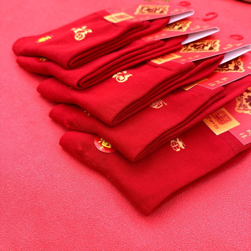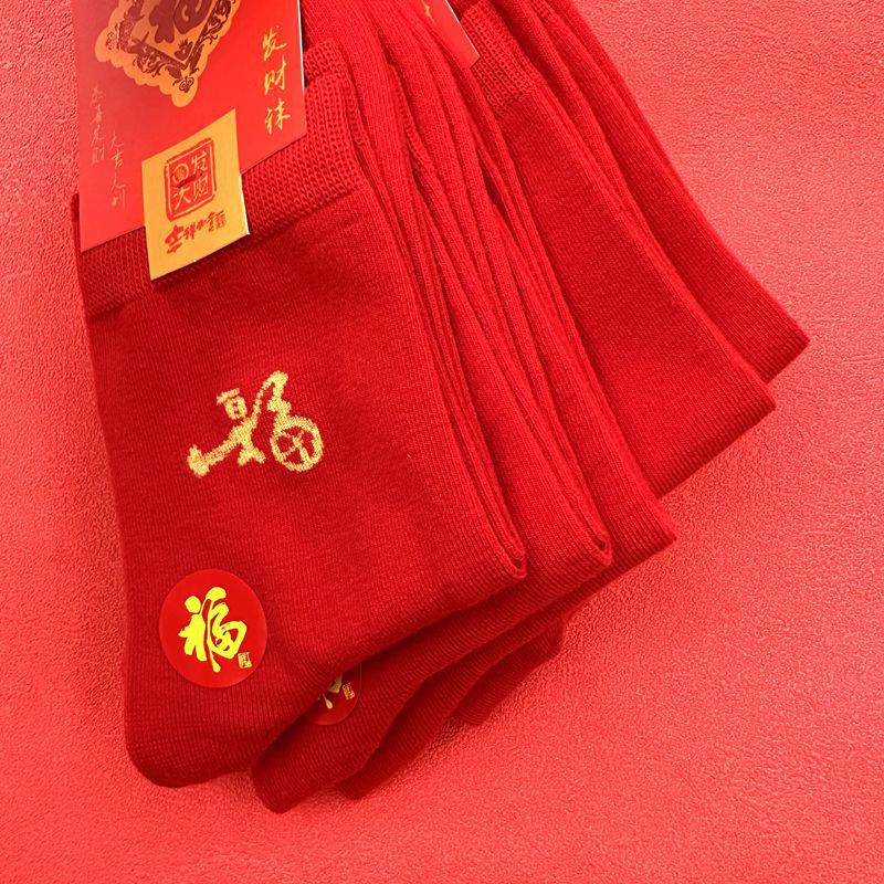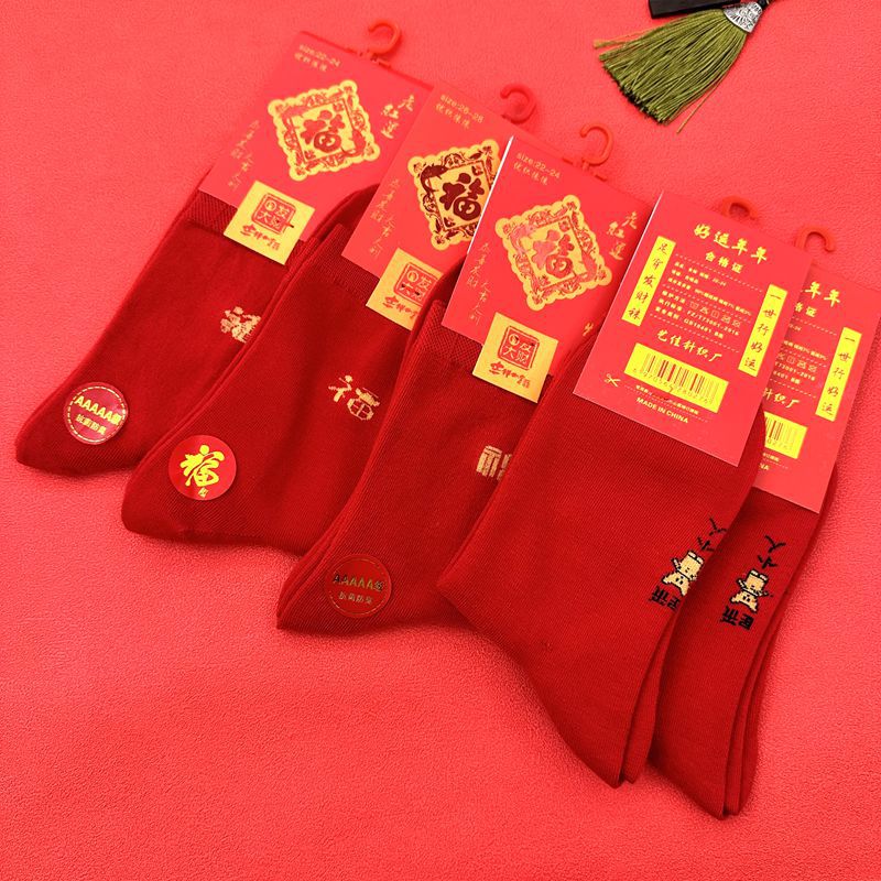 새해 양말 큰 빨간색 행운의 빗질면 풍부한 양말 중국 새해 빨간 양말 재고 도매로 남성과 여성을위한 중간 두꺼운 튜브스토어 가기