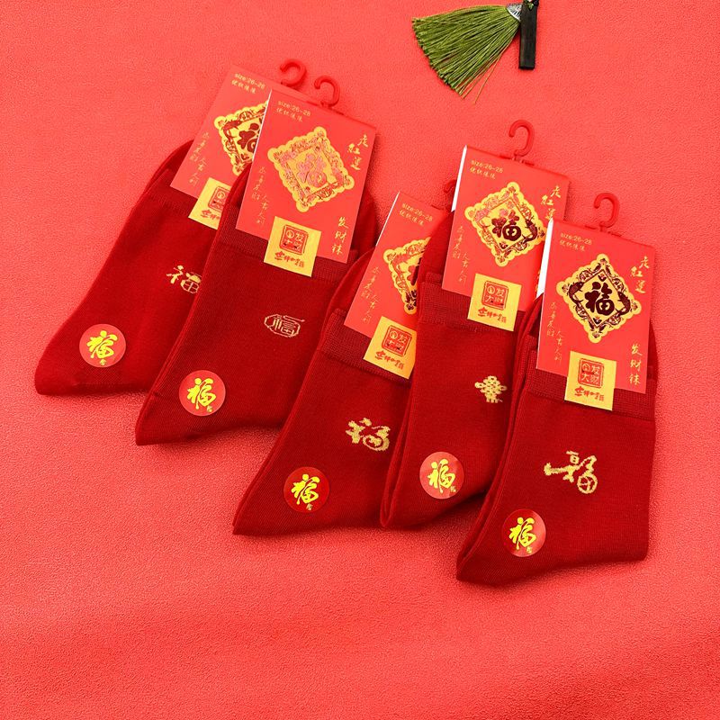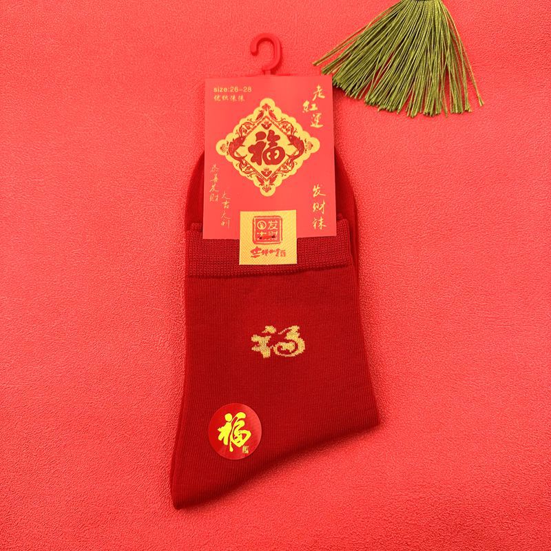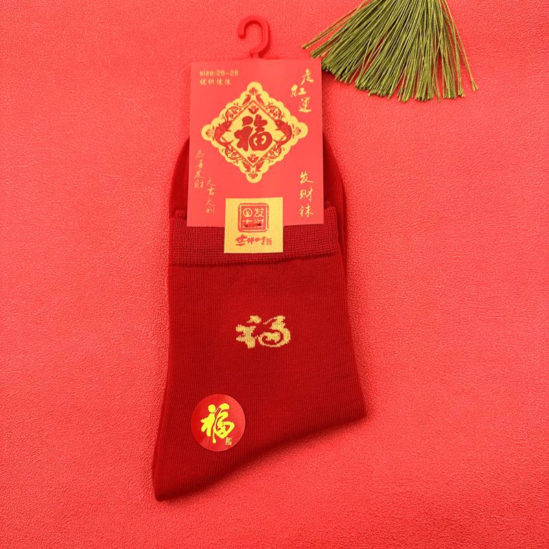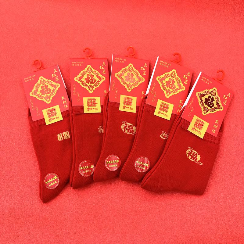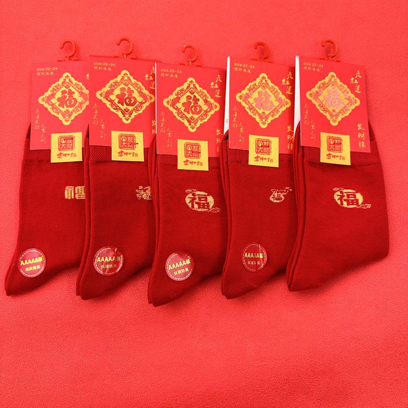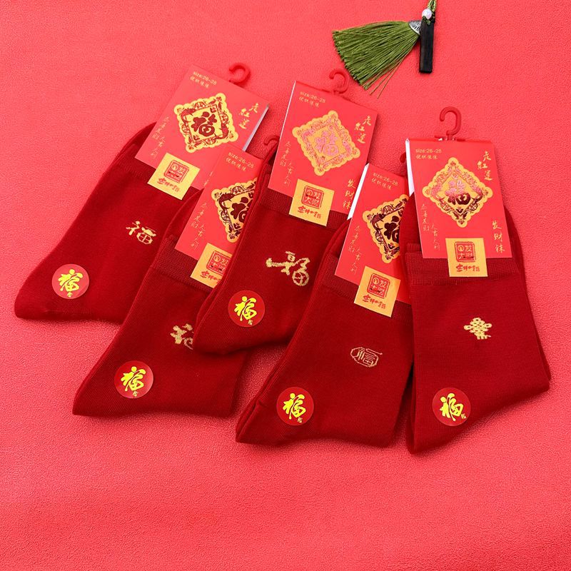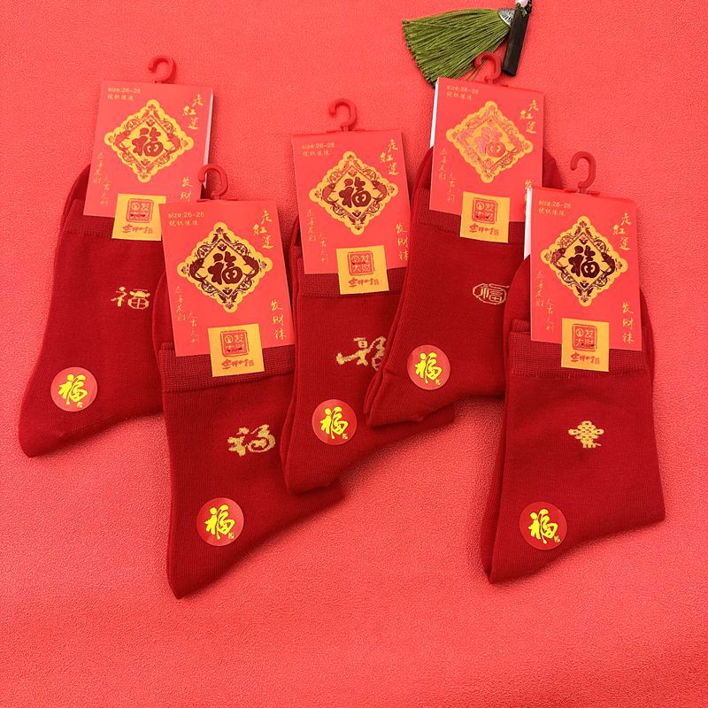 새해 양말 큰 빨간색 행운의 빗질면 풍부한 양말 중국 새해 빨간 양말 재고 도매로 남성과 여성을위한 중간 두꺼운 튜브스토어 가기