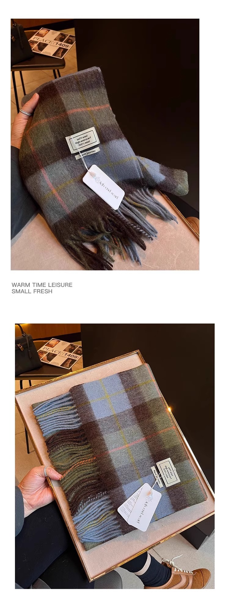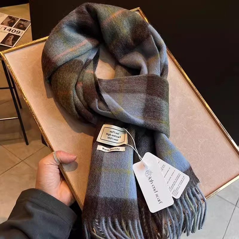 100% 양모 목도리 올매치 패션 서양식 학생 따뜻한 목 여성의 좁은 색상 매칭 격자 무늬 스카프 여성의 겨울