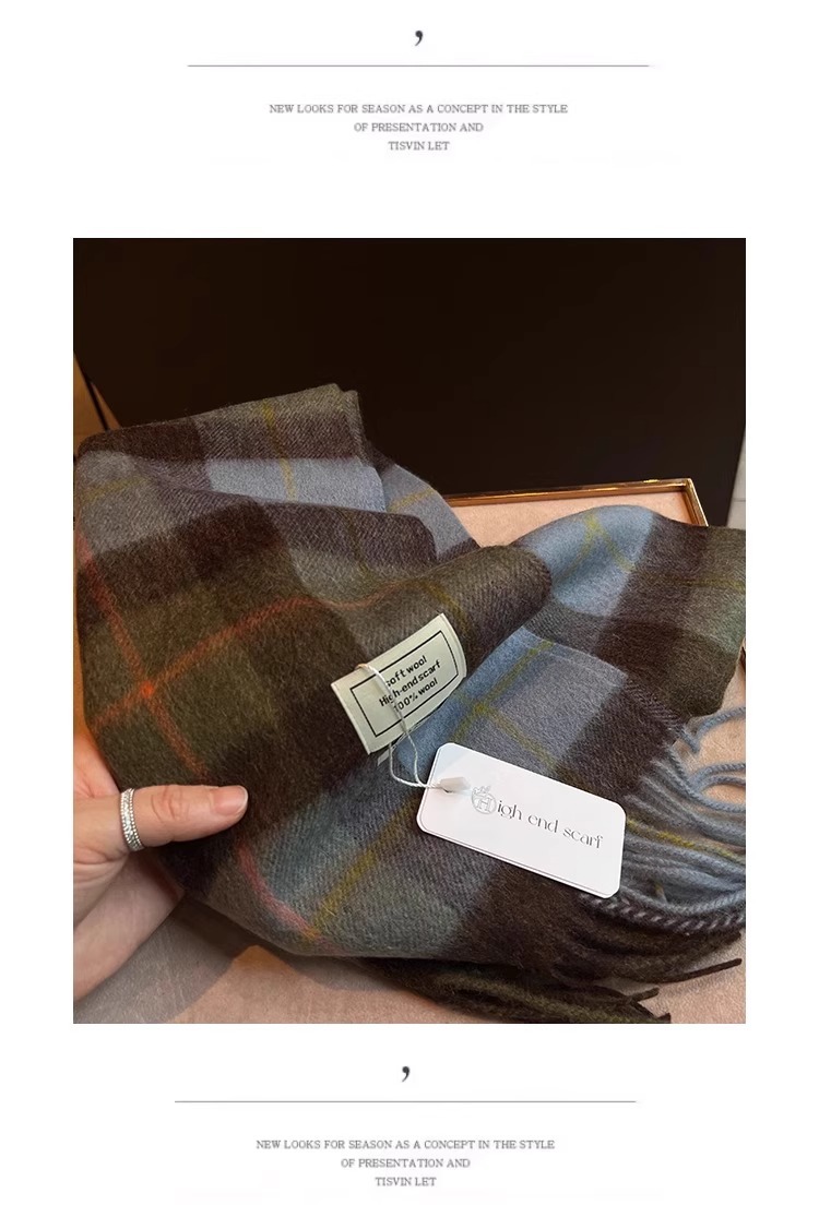 100% 양모 목도리 올매치 패션 서양식 학생 따뜻한 목 여성의 좁은 색상 매칭 격자 무늬 스카프 여성의 겨울스토어 가기