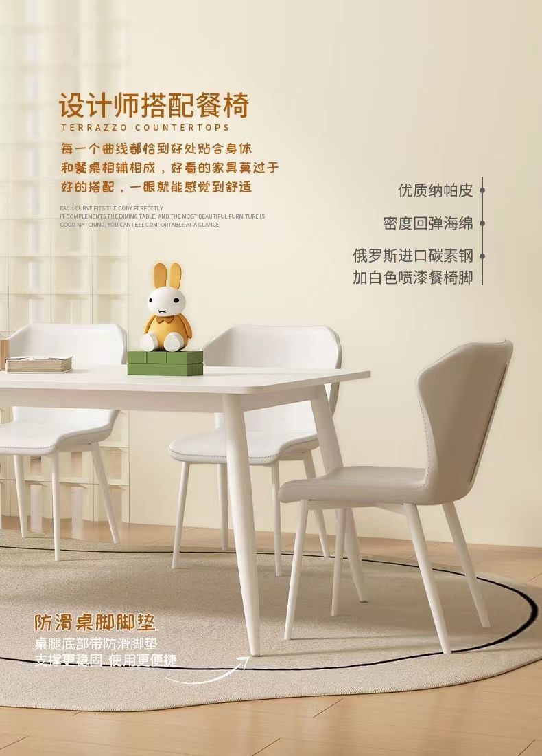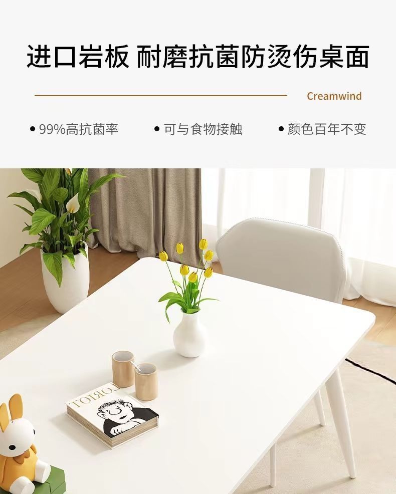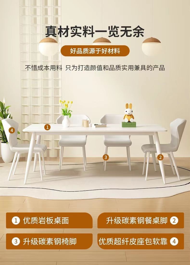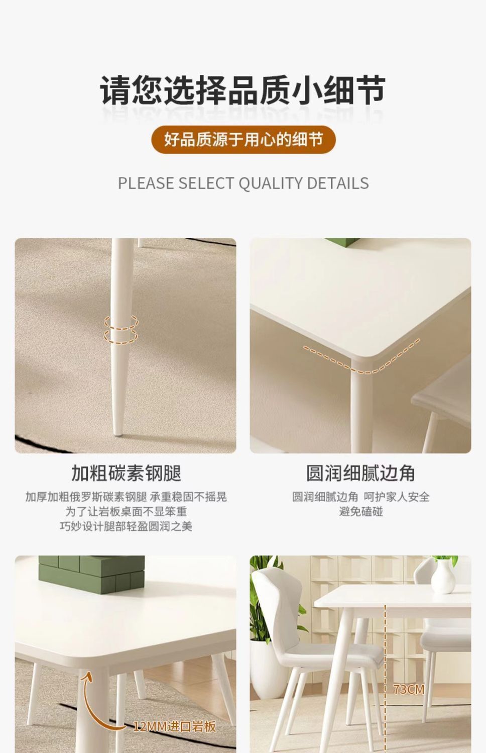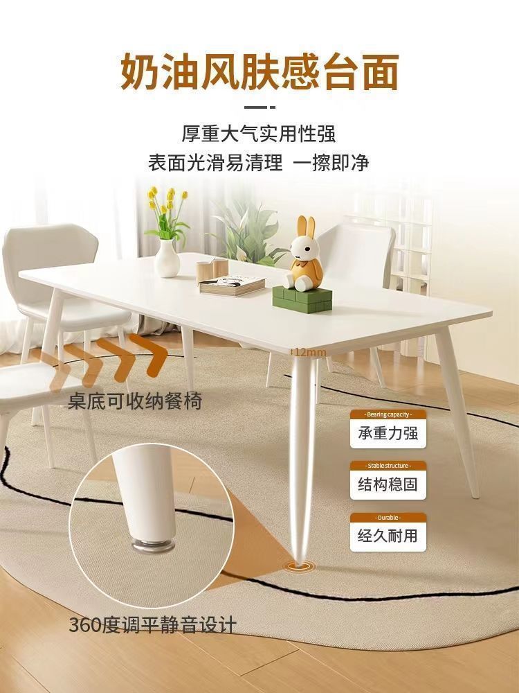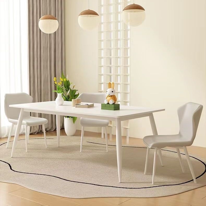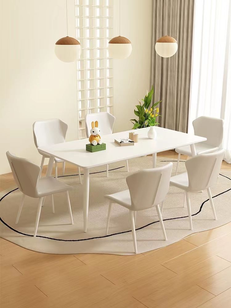 미니멀리스트 순수 화이트 록 보드 식탁 홈 작은 아파트 식탁 간단한 북유럽 직사각형 식탁 및 의자 조합스토어 가기