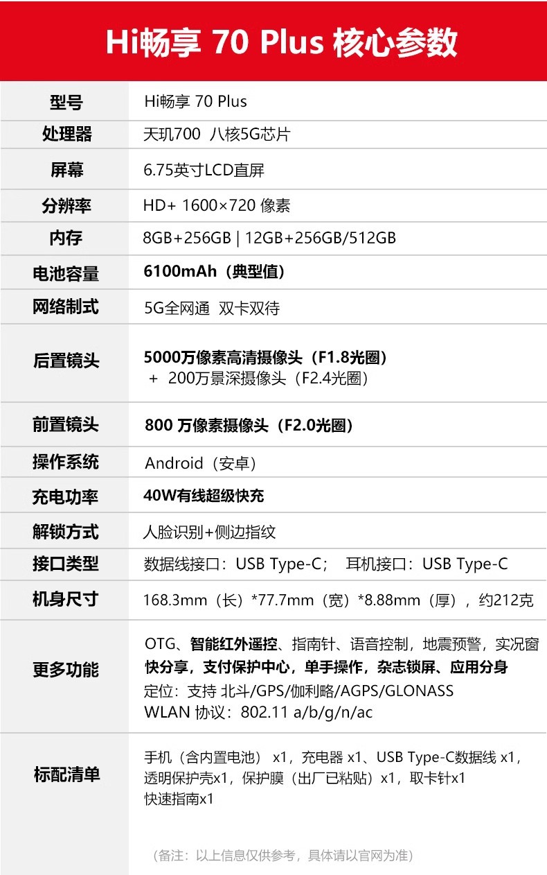 화웨이 Zhixi 새로운 안녕하세요 70 플러스 풀 넷콤 5G 스마트 폰 적외선 6100 mA 40W 즐기기
