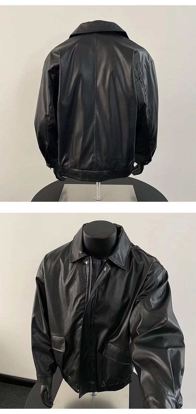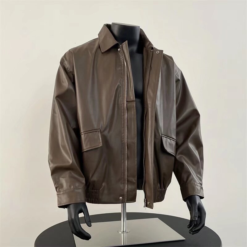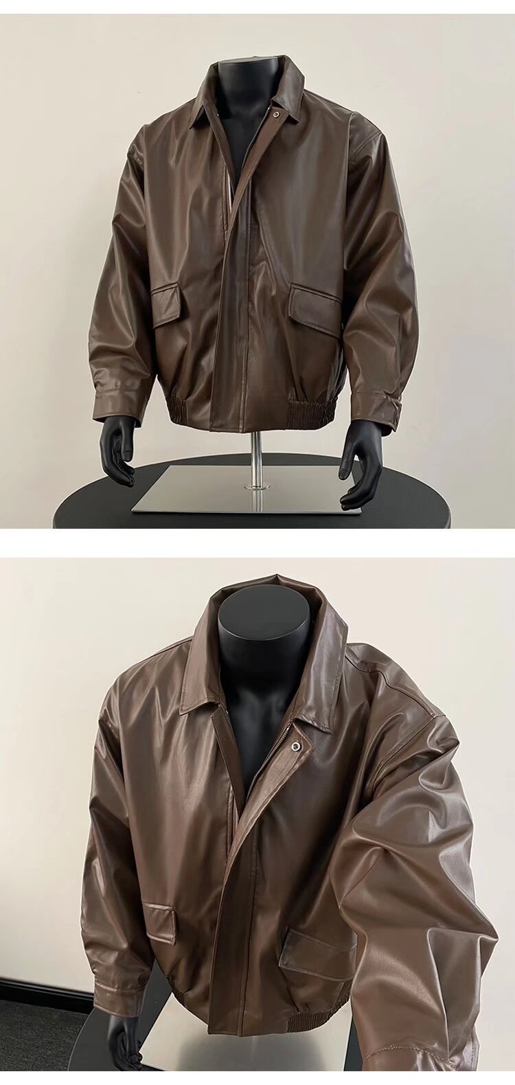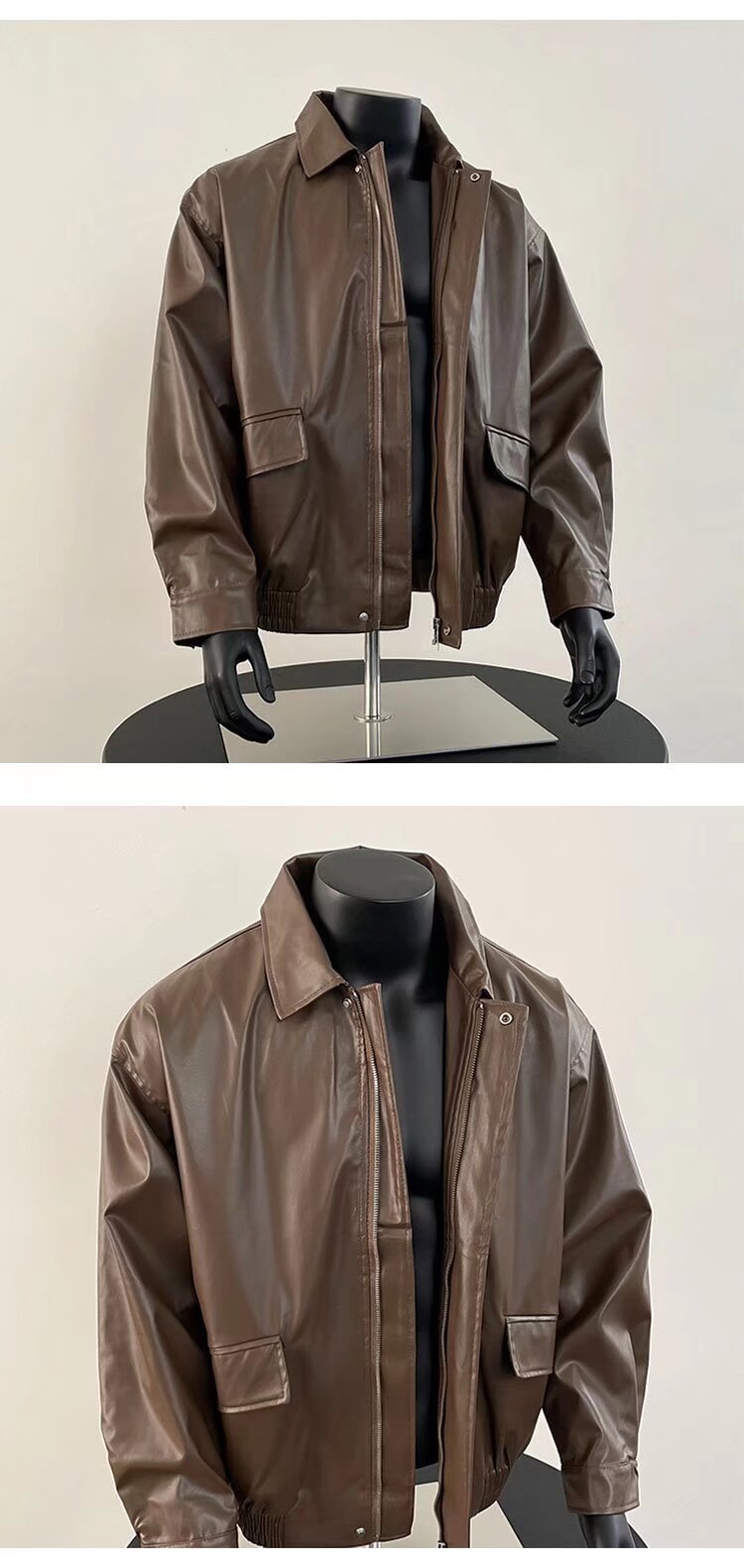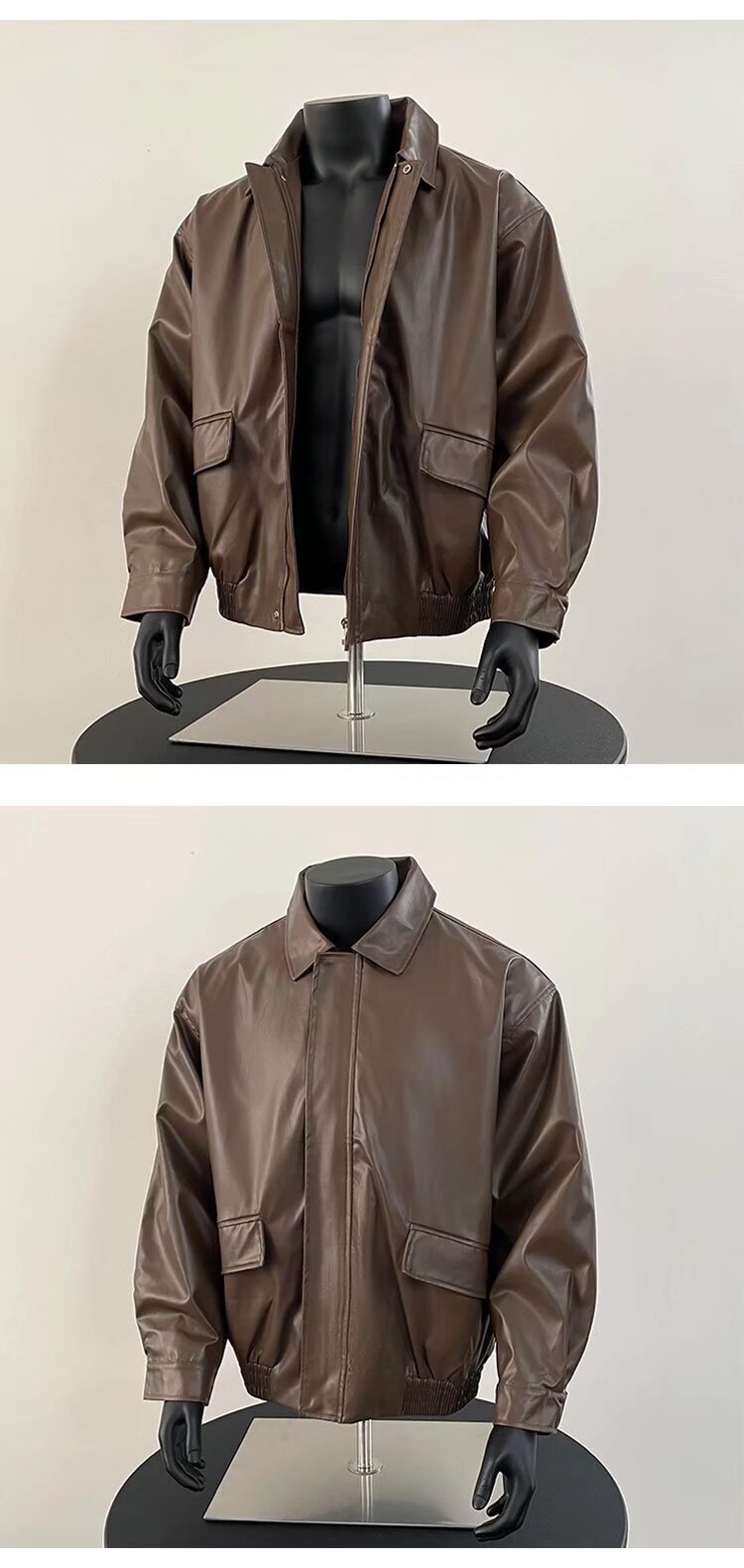 트렌디 브랜드 메일라드 브라운 가죽 재킷 남성용 가을 겨울 캐주얼 루즈핏 PU 재킷