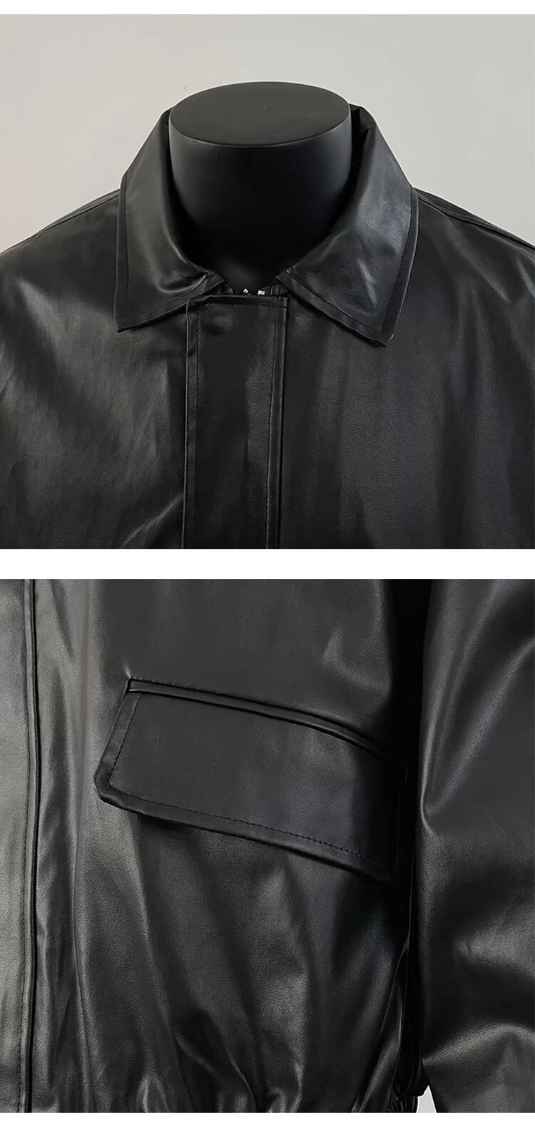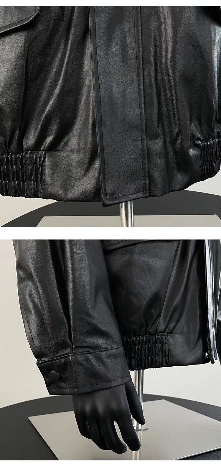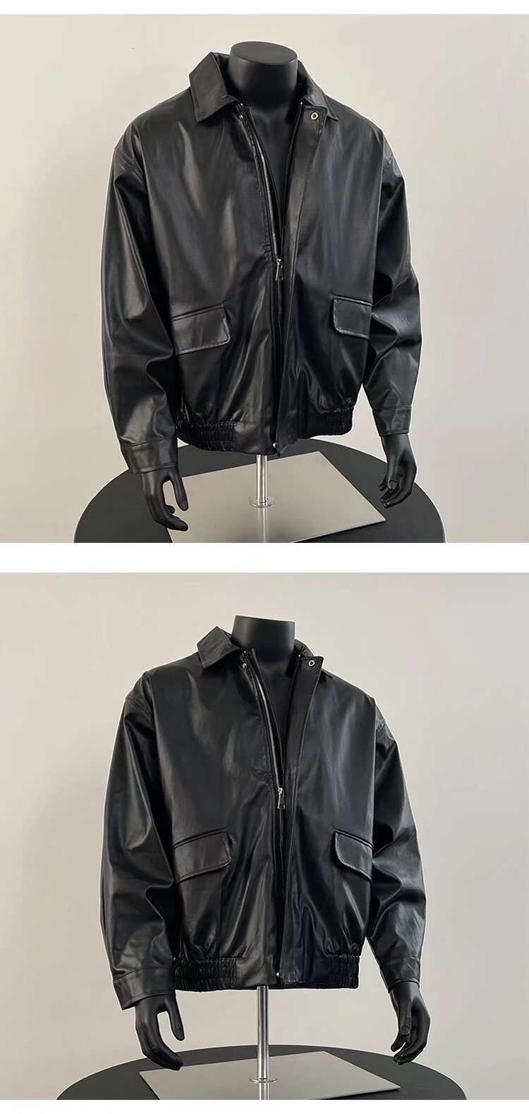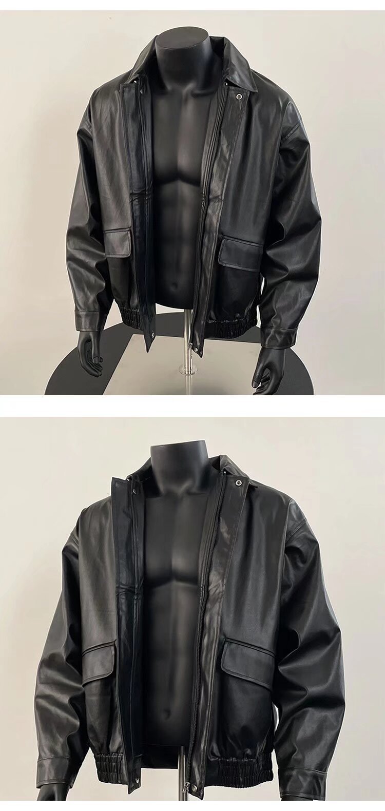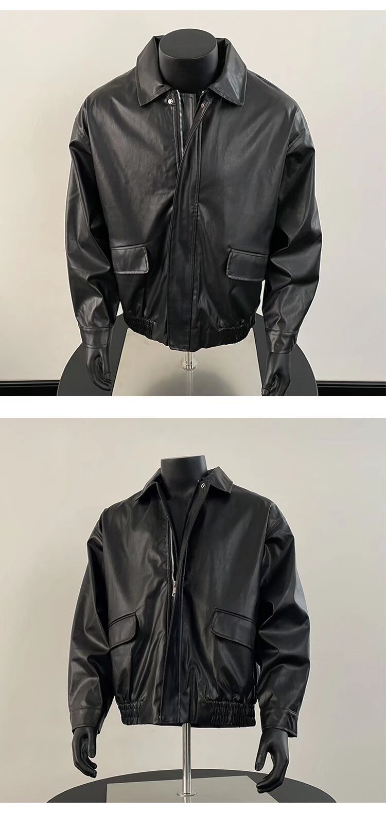 트렌디 브랜드 메일라드 브라운 가죽 재킷 남성용 가을 겨울 캐주얼 루즈핏 PU 재킷