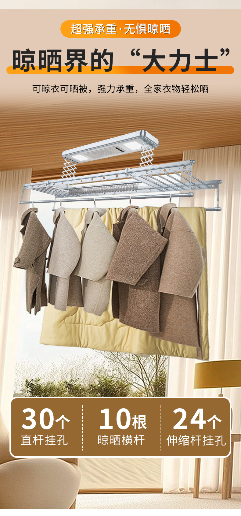 다기능 전동 건조대, 조명, 살균, 건조 기능을 갖춘 올인원 스마트 건조대, 옷과 이불을 동시에 건조, 공장에서 바로 출고 가능