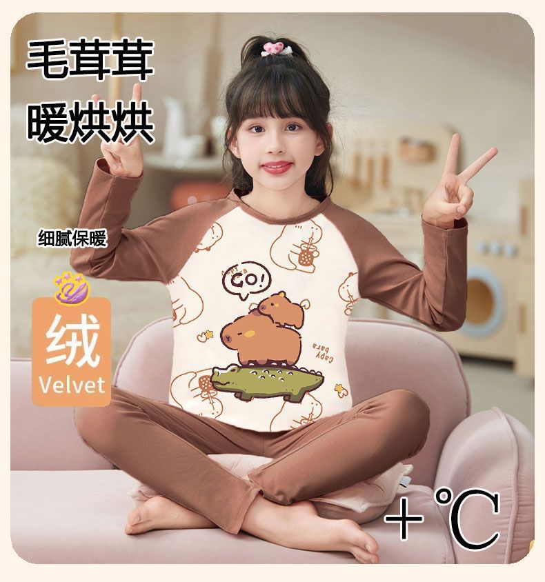 소녀 잠옷 만화 귀여운 둥근 목 가을과 겨울 두꺼운 열 속옷 큰 어린이 소녀 아기 집 옷스토어 가기
