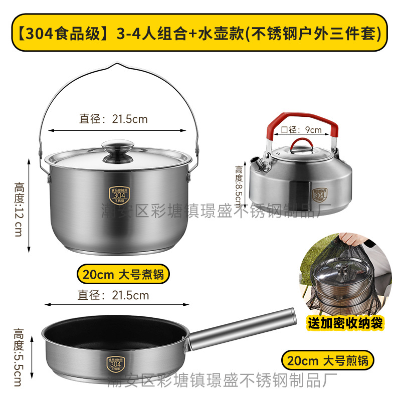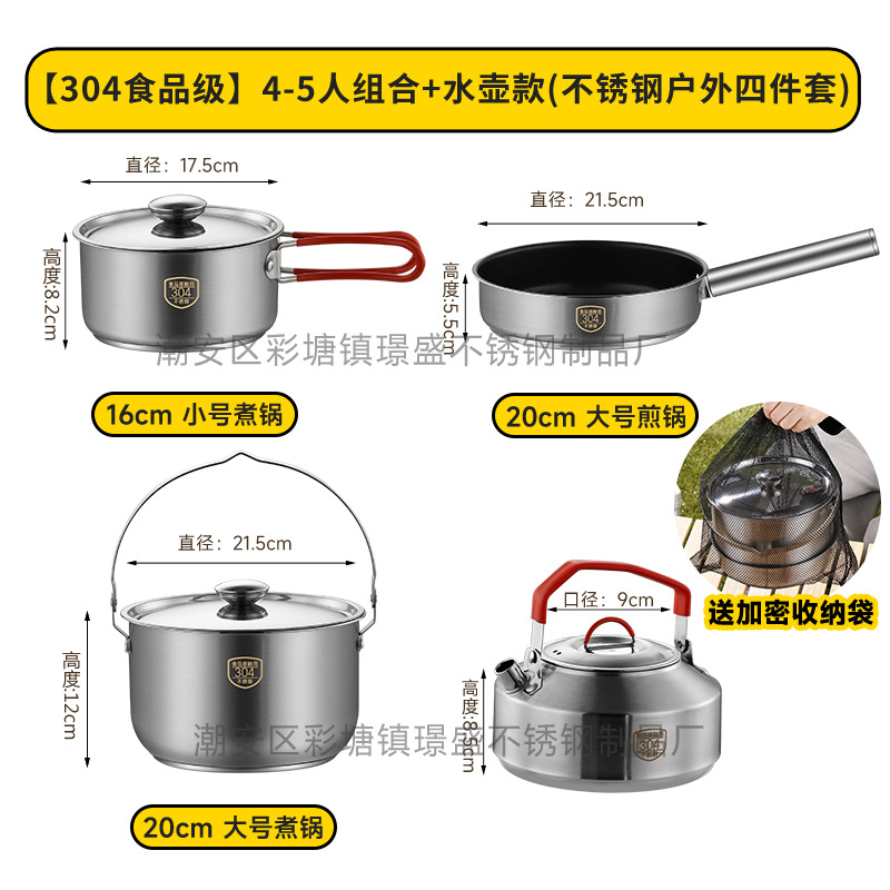 304 스테인레스 스틸 야외 조리기구 캠핑 조리기구 카드 스토브 특수 냄비 주전자 요리 장비 전체 세트 세트스토어 가기