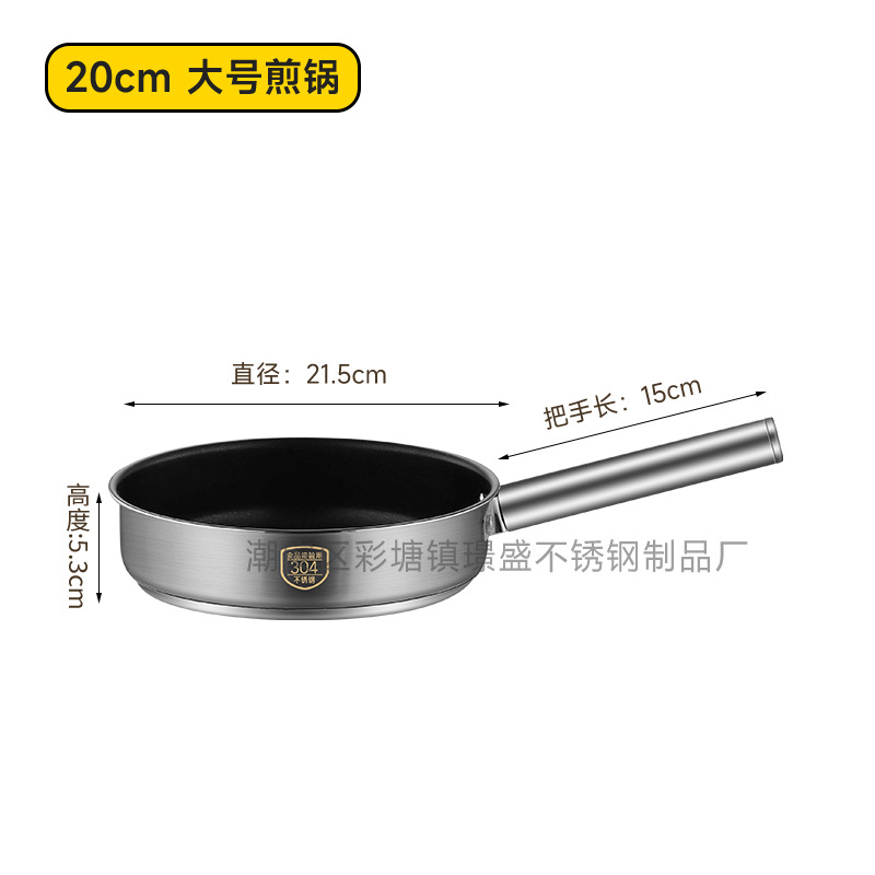 • [304 식품 등급] 20CM 걸이 냄비 + 20CM 이중 바닥 붙지 않는 프라이팬, 3-4인용 냄비 조합에 적합