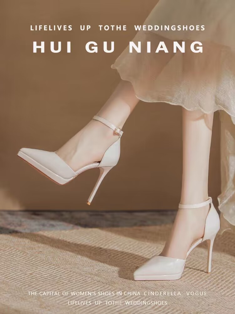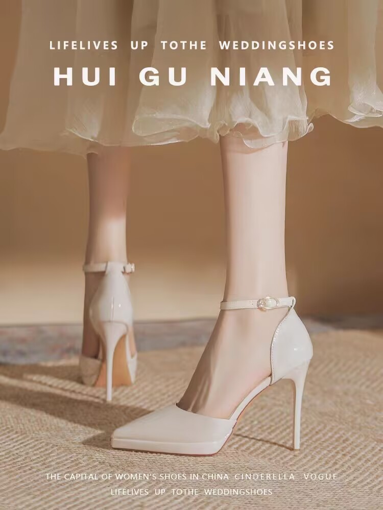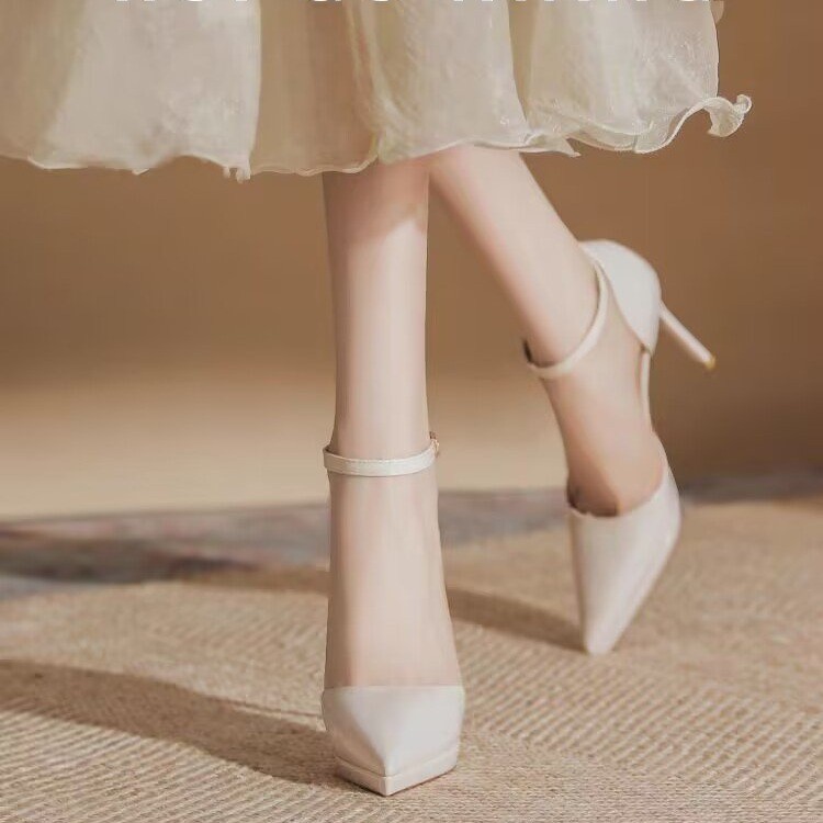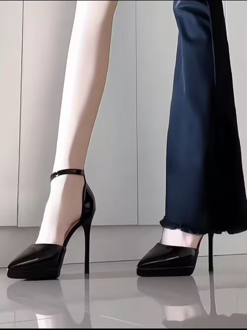 여성을위한 한 단어 스트랩 방수 플랫폼 하이힐 신발 2025 새로운 지적 발가락 스틸레토 블랙 특허 가죽 싱글 신발 Baotou 중공 샌들스토어 가기