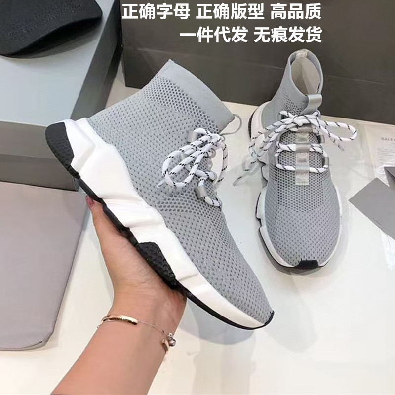 그레이 레이스업 진공 밑창 하이탑 파리 양말 스타일 신발 2026년 신상 트렌디 탄성 니트 양말형 운동화스토어 가기