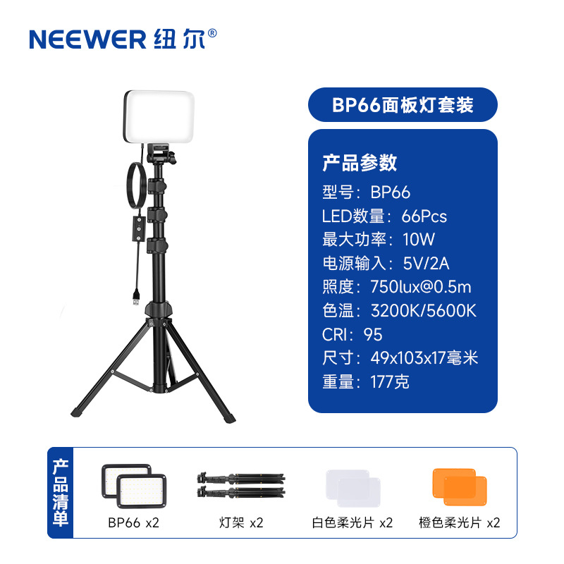 NEEWER Newer BP66 패널 라이트 라이브 보충 라이트 플랫 라이트 LED 사진 외부 조명