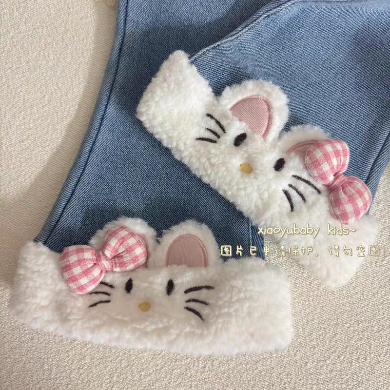• 벨벳 여아청바지 - 발끝에 흰고양이 [블루]